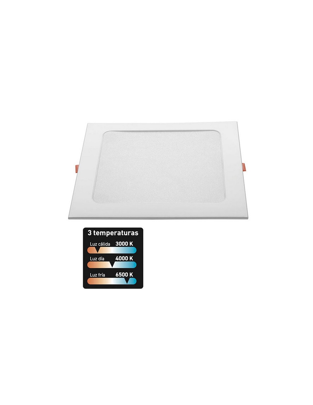 Downlight Led DUOLEC Roma Cuerpo plástico. 18 W. 1260 lm. 3 temperaturas de color: 3000-4000-6000K. Cuadrado. Empotrable. 21x21x2,8 cm.
