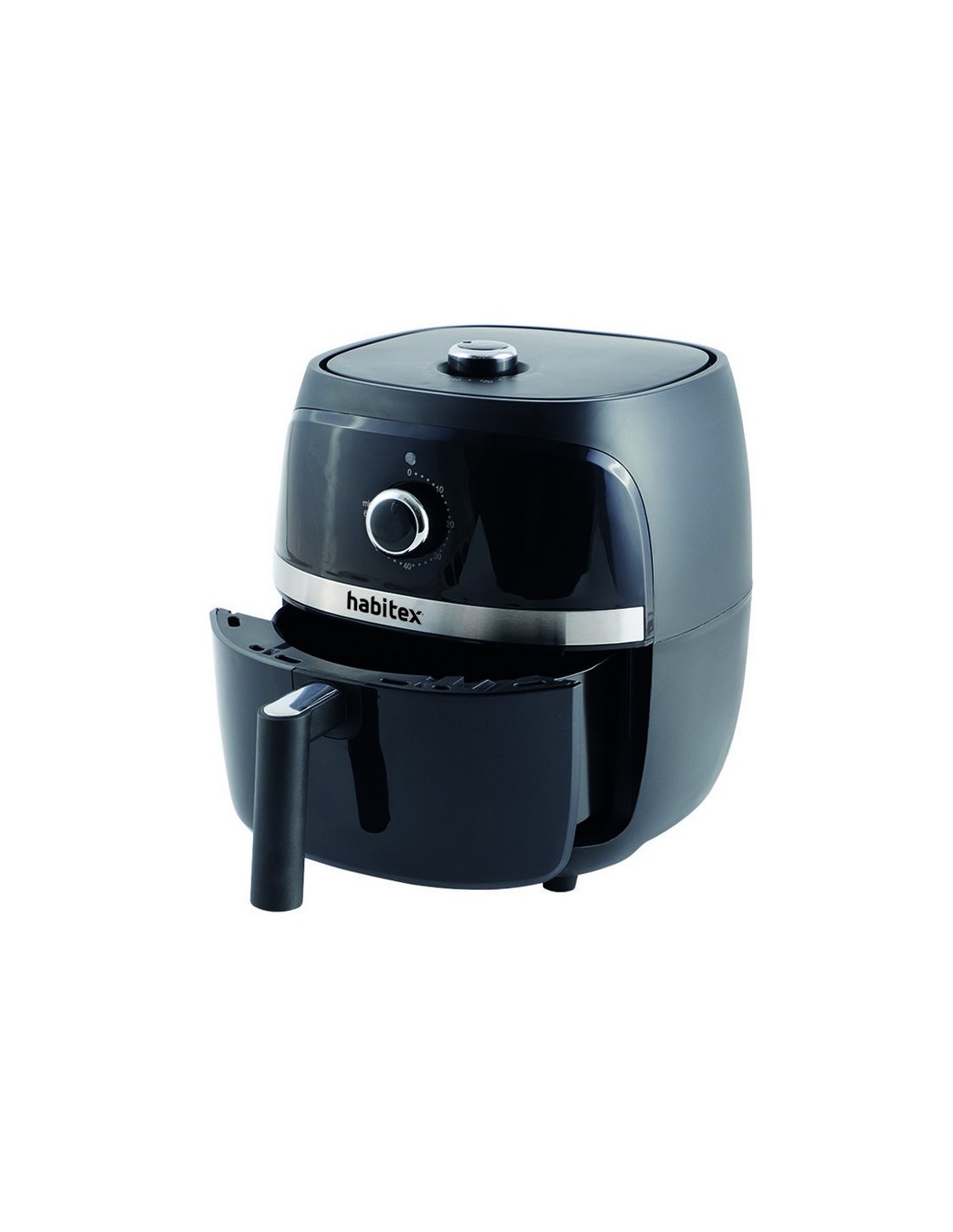 Freidora de aire caliente HABITEX Air Fryer CC219M Con temporizador de 1 a 60 minutos, apagado automático, control de temperatura ajustable y protección contra sobrecalentamiento. Incluye recipiente y bandeja antiadherentes, luz indicadora y base antideslizante. Potencia: 1.300 W.