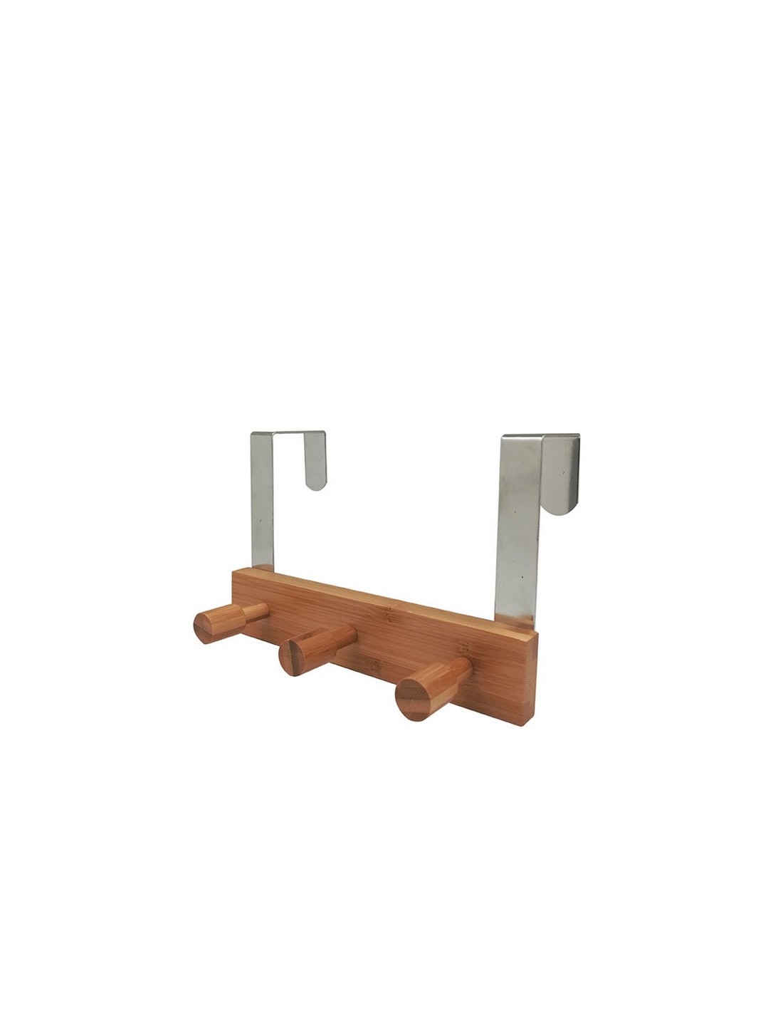Perchero puerta HABITEX Bambú Silver Metálica/bambú. No precisa tornillos. 3 ganchos. 20x10x12 cm.
