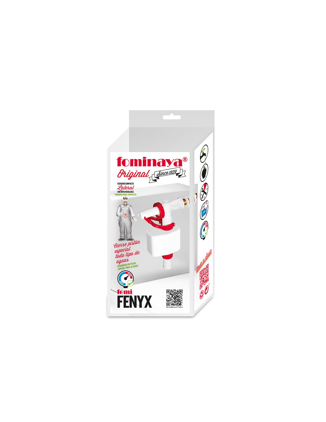 Grifo carga cisterna tanque bajo FOMINAYA Fenyx. Compacto telescópico. Cierre de pistón, llenado rápido y silencioso, sistema antical sin filtro, boya regulable. Especial todo tipo de aguas. Alimentación lateral.