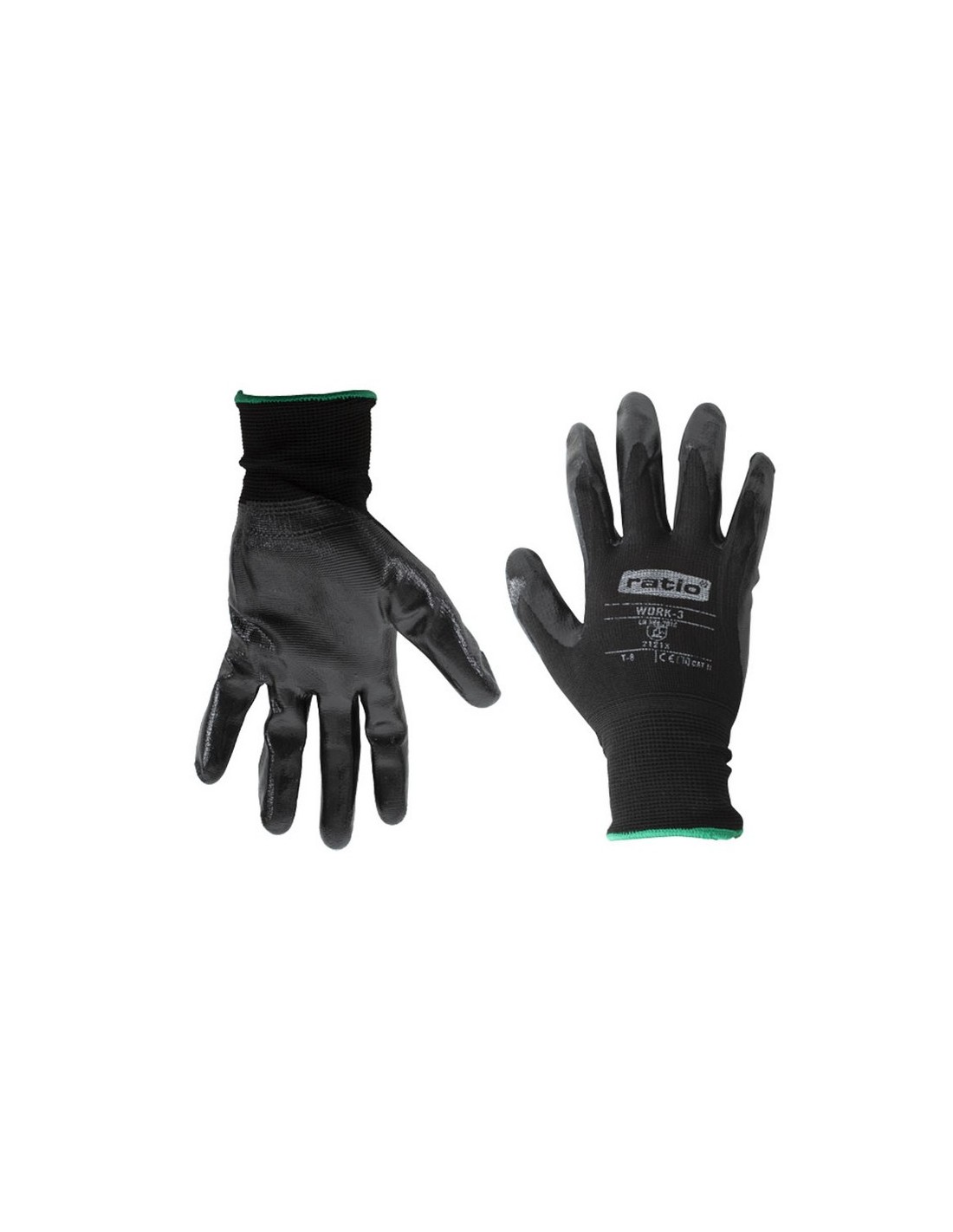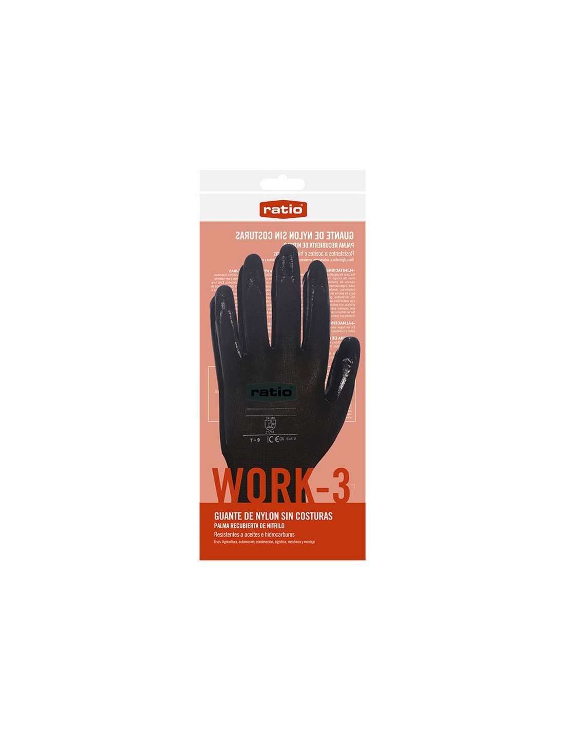 Guante RATIO Work-3. Nilón negro sin costuras. Talla 8.
