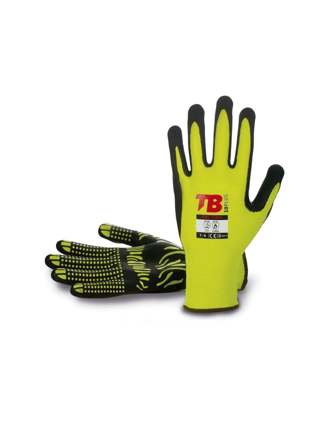 Guante BODERO 700F Zebra Algodón y elastano amarillo sin costuras. Recubrimiento nitrilo foam negro en palma. Puño elástico. Grip PVC diseño Zebra en palma. Usos: automoción, logística, mecánica, carga y descarga, etc. Cat II EN388 EN 407. Talla 10.