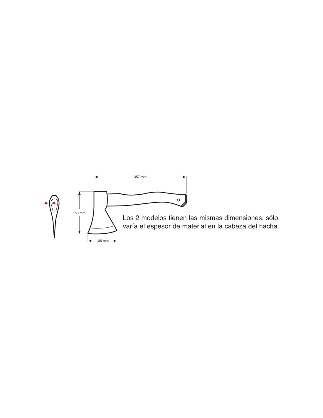 Hacha americana LISTA. Mango fibra de vidrio con empuñadura antideslizante. 500 gr. Espesor cabeza 4 mm.
