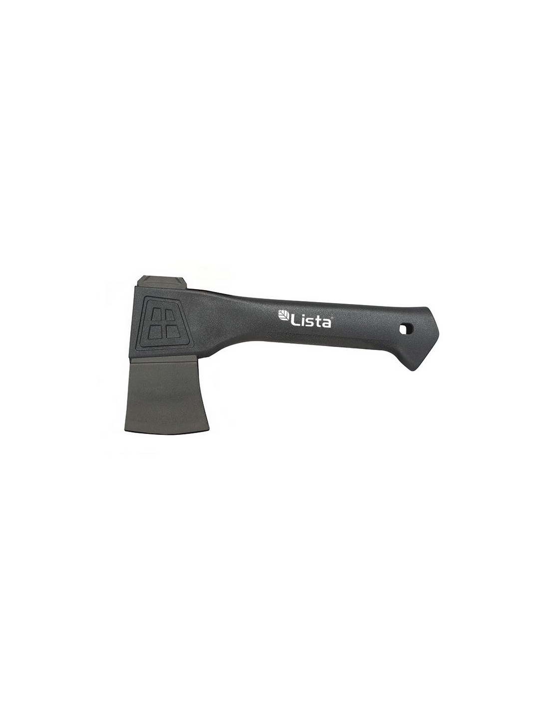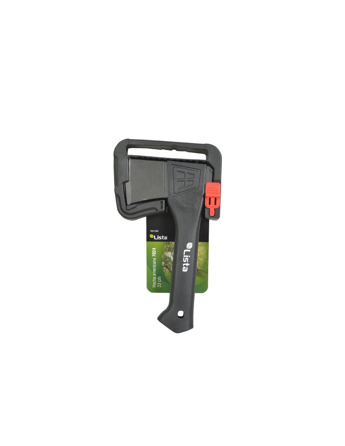 Hacha americana LISTA 7024 1 solo material. Empuñadura fibra vidrio hueco reforzado y resistente a la intemperie. Cabezal que no se desprende para aplicaciones de alto par. Ángulo de corte agresivo para un trabajo eficiente. Herramienta versátil para todos los hogares y fogatas de campamento. Peso total 560 gr. 440 gr. Longitud 230 mm.