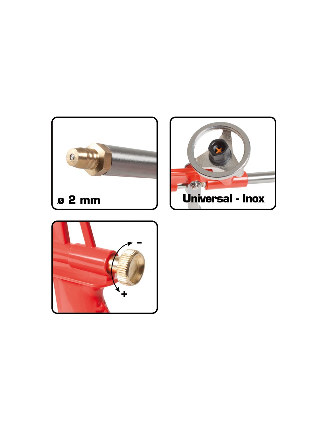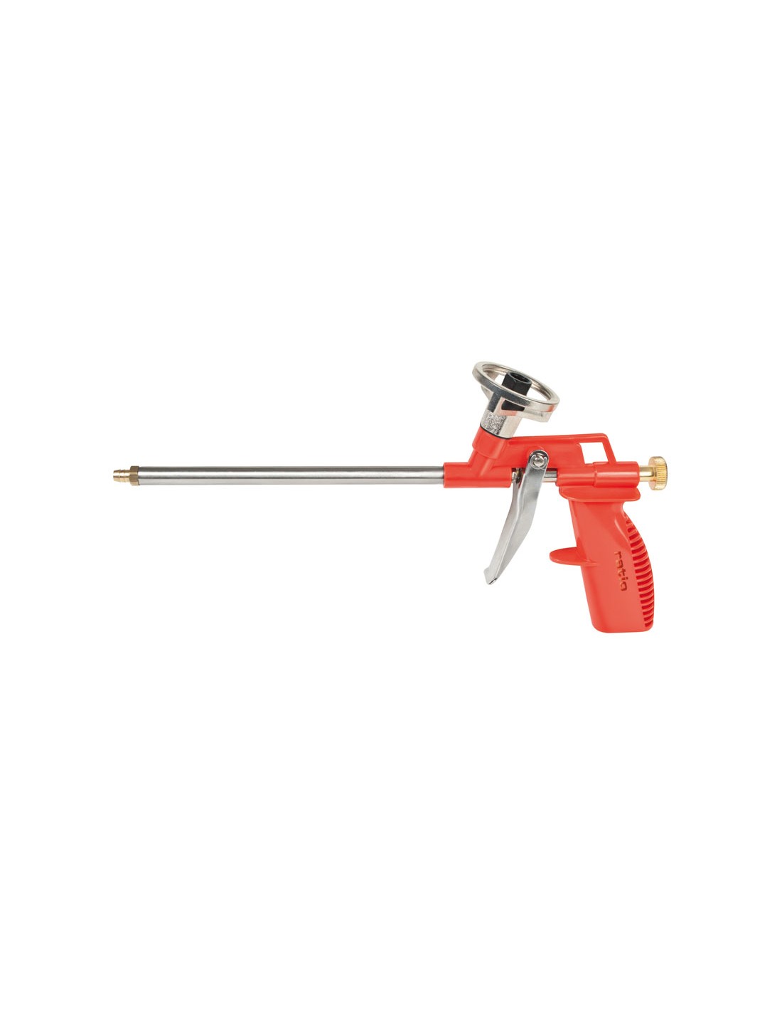 Pistola poliuretano RATIO 5157. Cuerpo de polipropileno. Tambor interior acero inox. Rosca universal. Flujo de material regulable. Incluye 2 tubos extensores 18 cm y 2 tubos 4,5 cm con punta cónica para formación de espuma en espacios estrechos. Boquilla de cobre ø 2 mm.