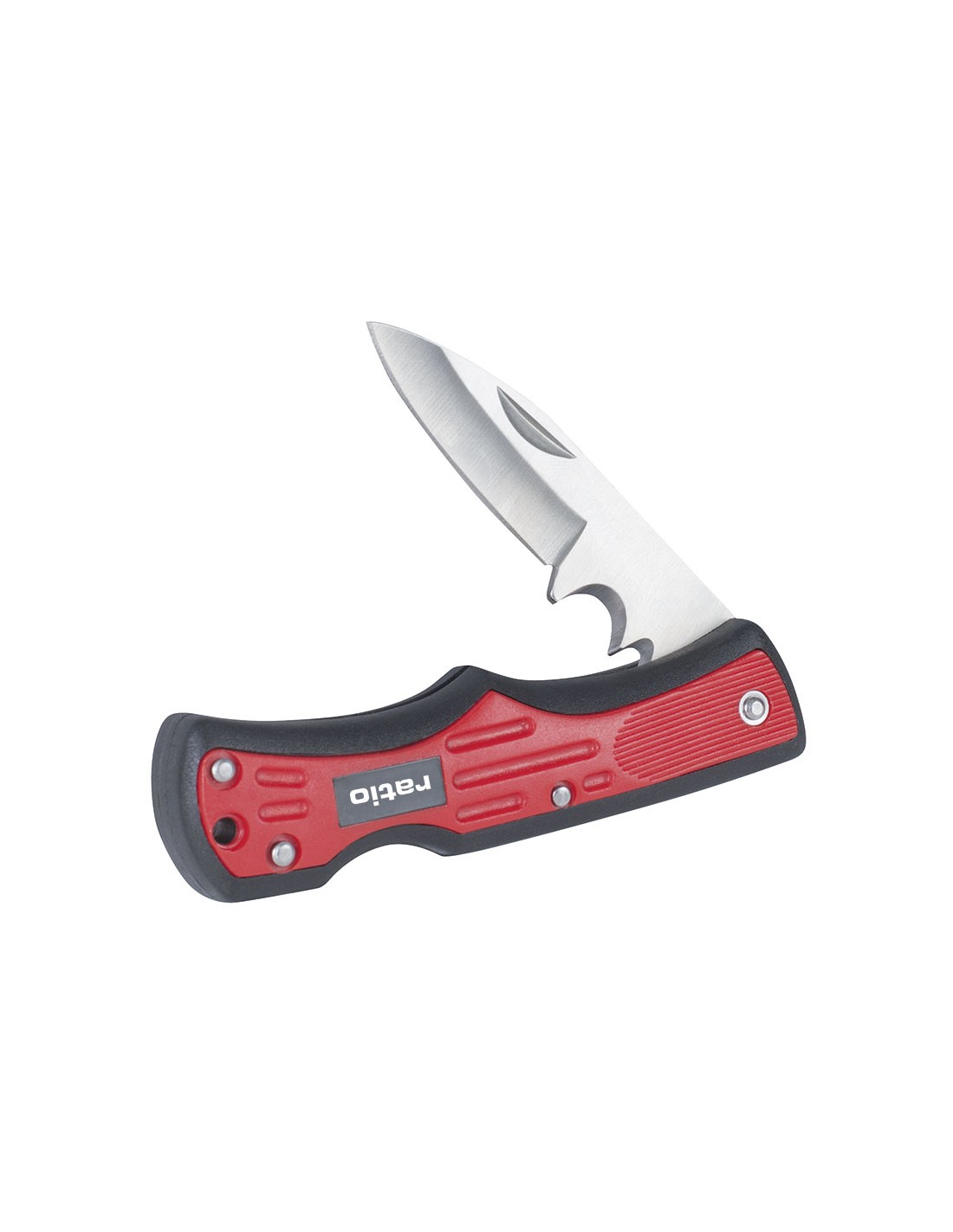 Navaja electricista RATIO 6551 Hoja acero inoxidable 3CR13 pulida. Doble muesca para pelar cables. Mango polipropileno 2 colores. Hoja: 76 mm.