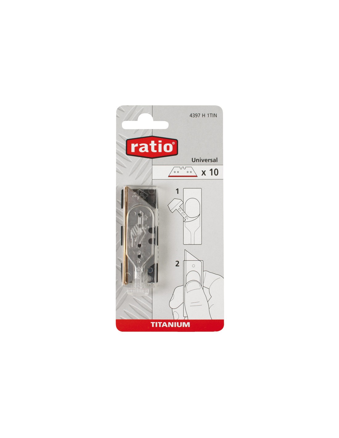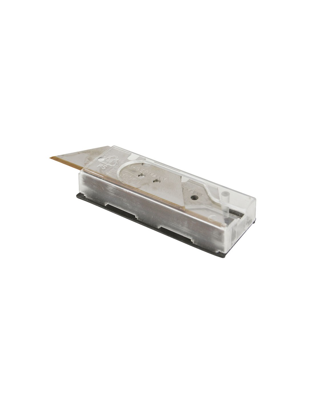 Cuchilla trapezoidal RATIO. Acero templado, triple afilado. Envase dispensador 10 unid. Trapezoidal. 60 mm.