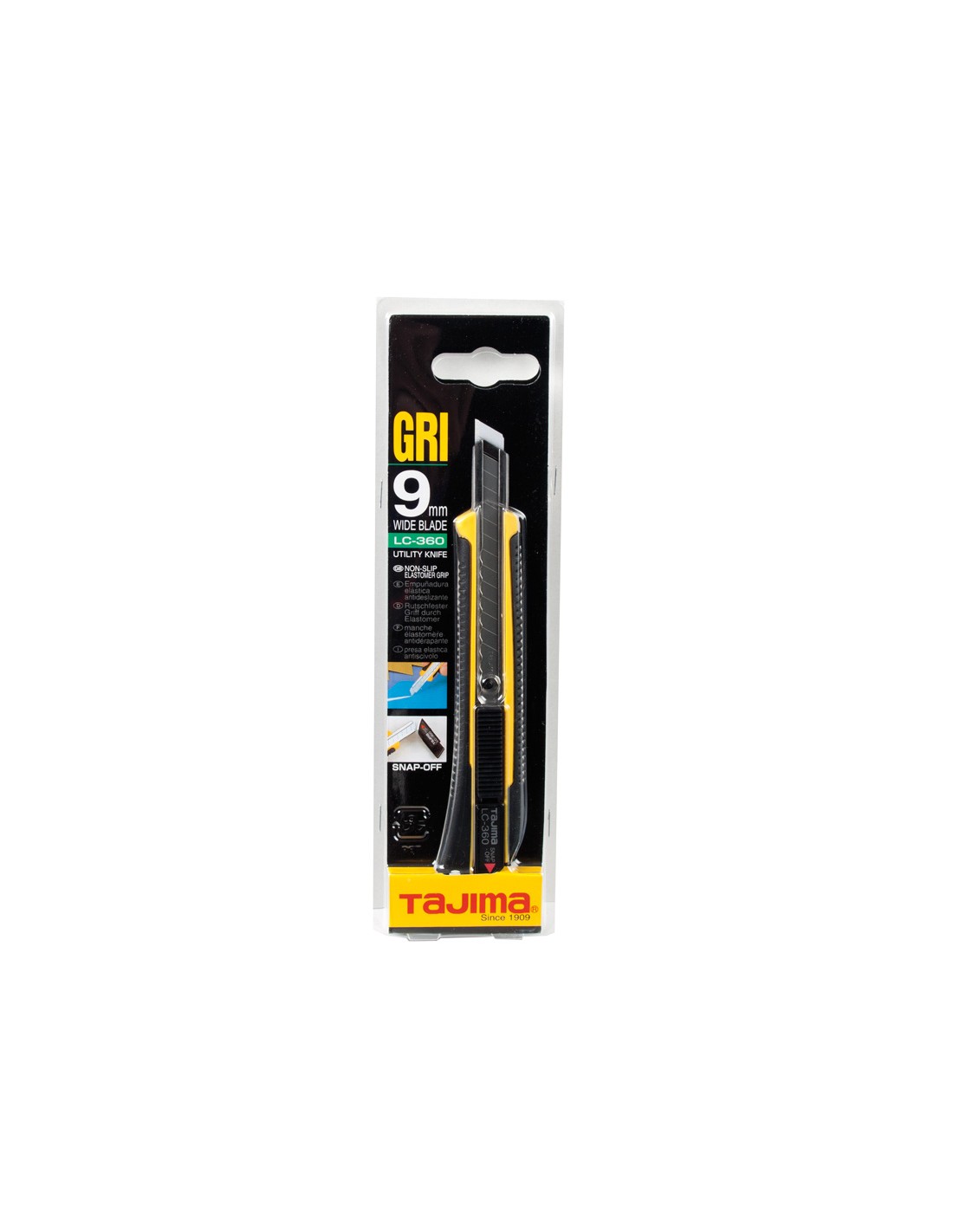 Cortador TAJIMA LC-360. Trabajos ligeros. Mango de acero inox con protección ABS y recubrimiento antideslizante. Ancho cuchilla 9 mm. Bloqueo automático.