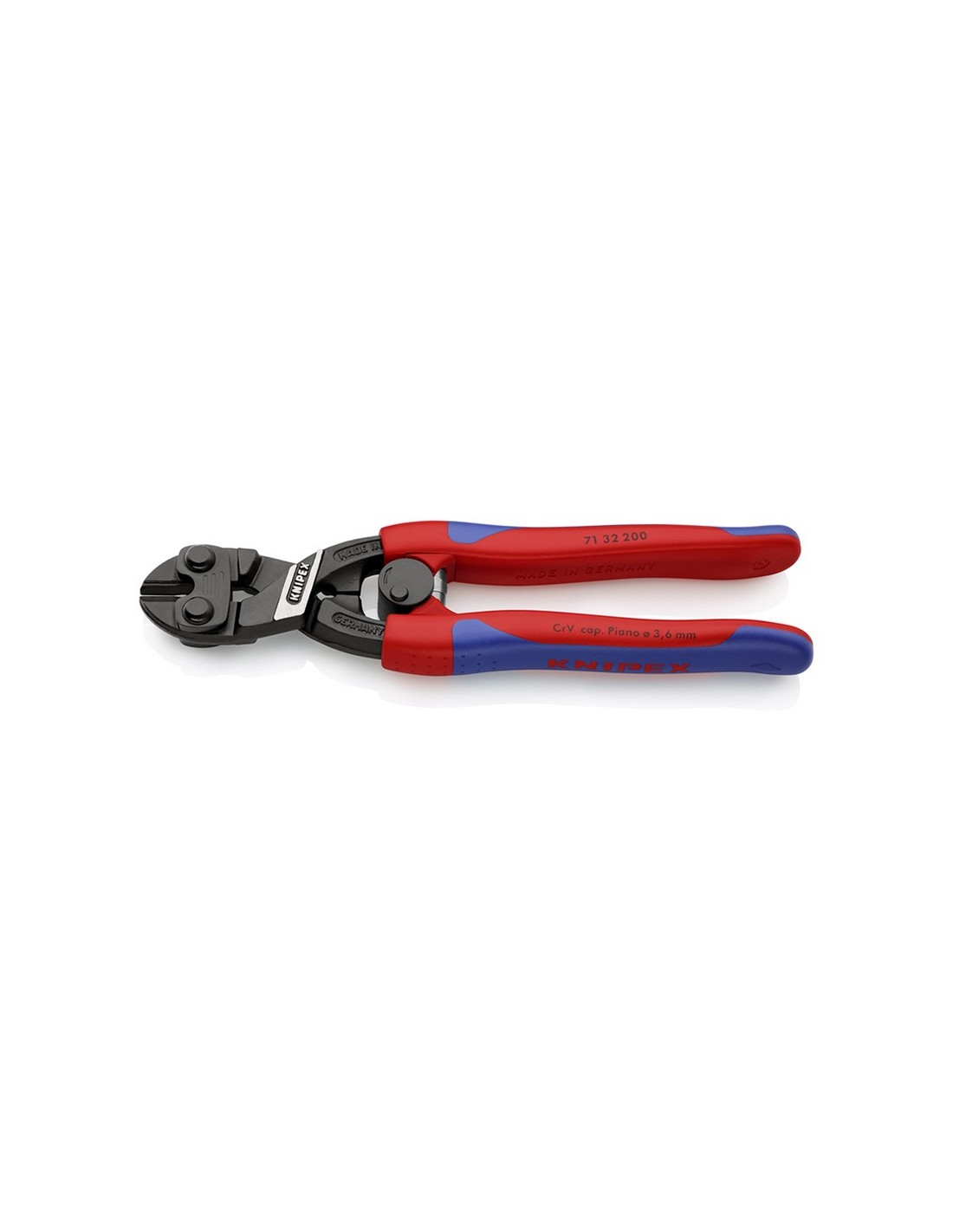 Cortavarillas KNIPEX Cobolt 71 32 200 Muelle de apertura y cierre integrado en los mangos para trabajo confortable. Corte de bulones, clavos y remaches hasta ø 5,2 mm. Dureza aprox. filos de corte 64 HRC. Acero cromo vanadio. Mangos antideslizantes bimaterial. 200 mm.