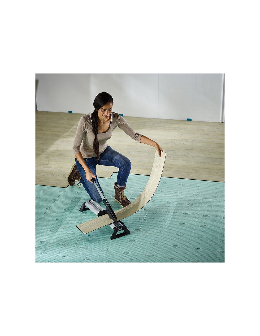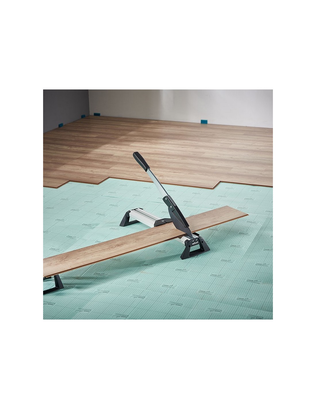 Guillotina corte vinilo/laminados WOLFCRAFT VLC 800 Geometría de cuchilla potente para cortar de forma precisa y sencilla cualquier tipo de laminado, también con insonorización de pisadas integrada, de hasta 11 mm de grosor y 465 mm de ancho Hendidura de corte ajustable para cortar vinilo fino de 2-4 mm. Topes para cortes a 90º, cortes angulares de 0-180º y cortes longitudinales. 197x661x211 mm.