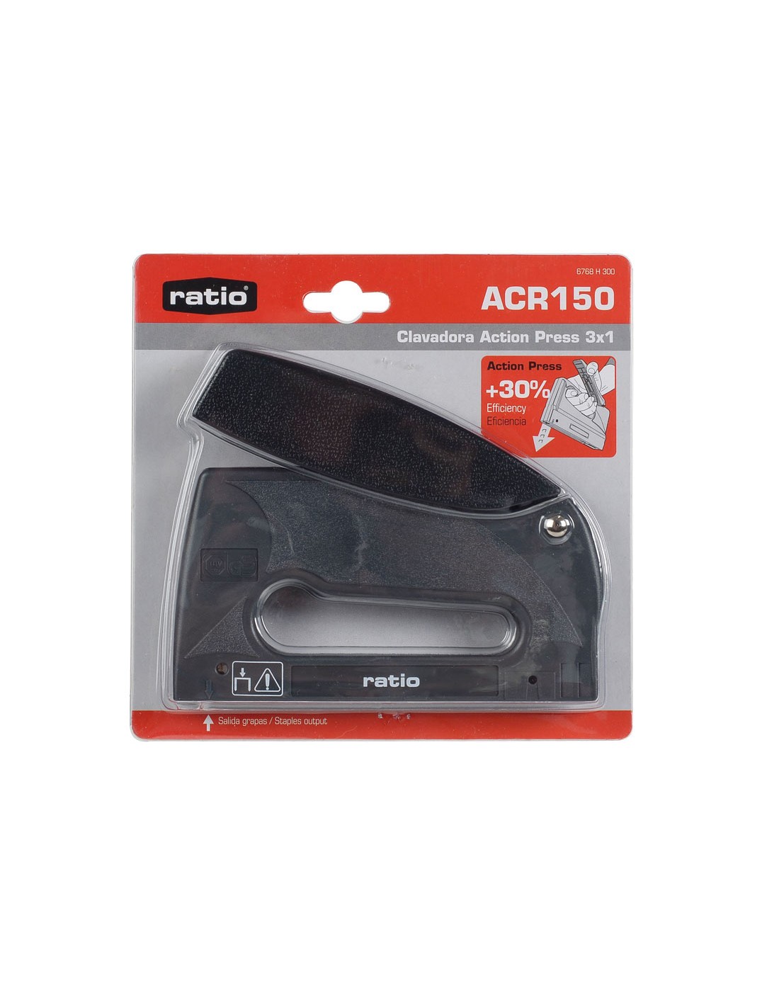 Clavadora multifunción RATIO ACR150 ActionPress 3 en 1 Armazón y empuñadura en ABS. Ergonómica, sistema de grapado "Action Press" que reduce el esfuerzo hasta un 30%. Grapas 131 (6-10 mm).