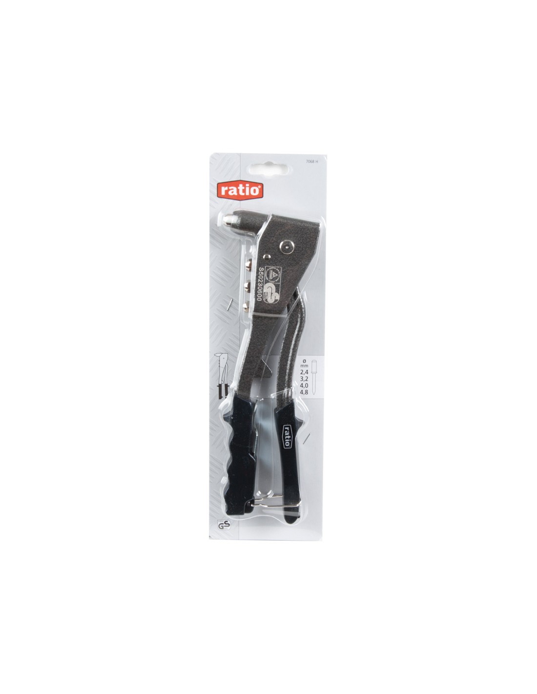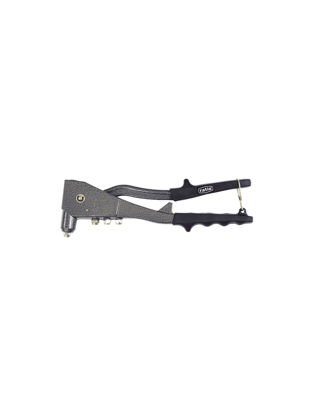 Remachadora RATIO 7068 Para remaches aluminio. Cuerpo aluminio reforzado, empuñaduras PVC. 4 boquillas ø 2,4-4,8 mm.