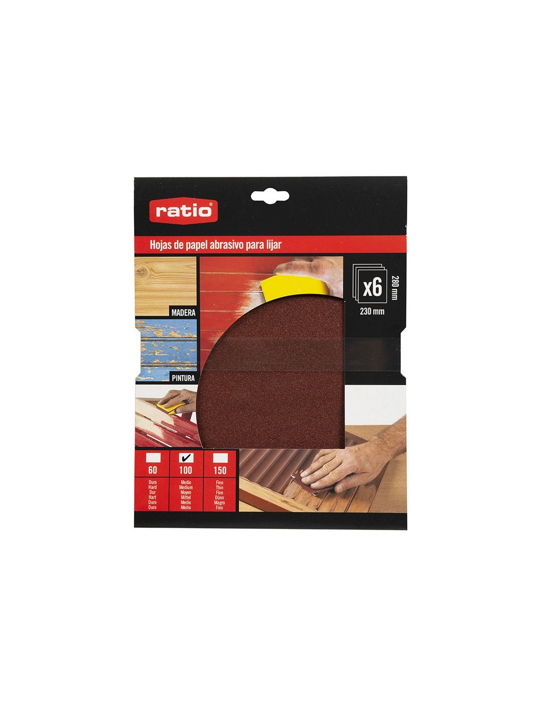 Esponja abrasiva RATIO 2402 Goma espuma flexible y lavable. Para lijar madera y metales. Medio/fino.