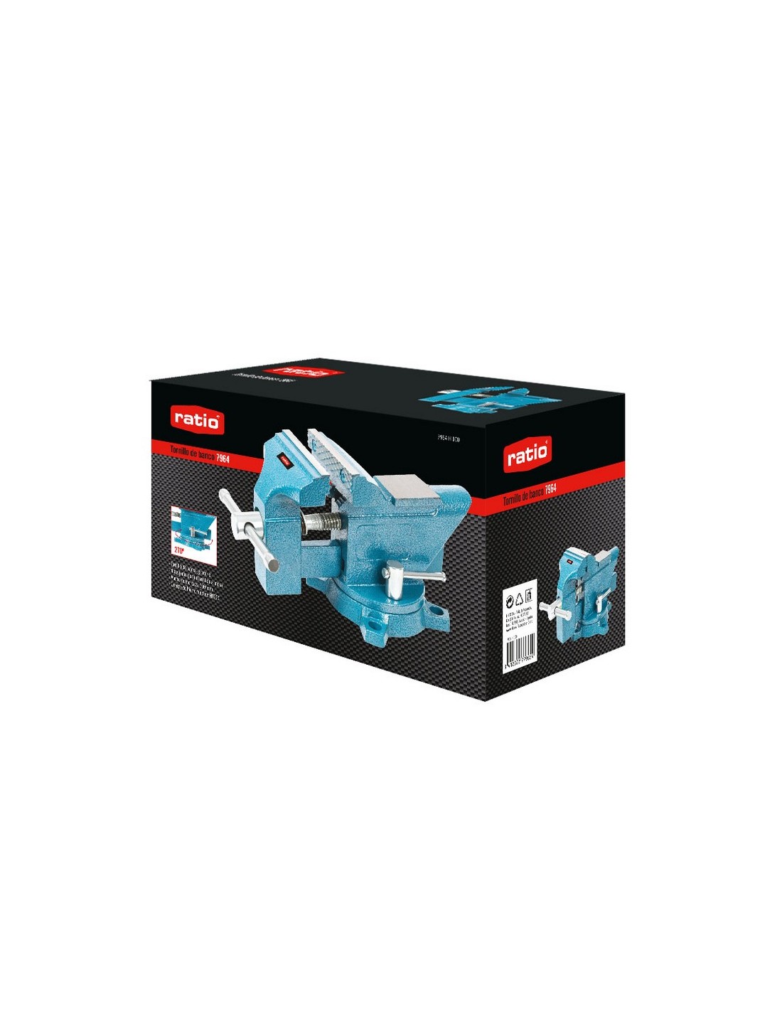 Tornillo banco RATIO 7964 Cuerpo hierro fundido. Tornillo y mango acero. Giratorio. Con yunque. Boca 100 mm.