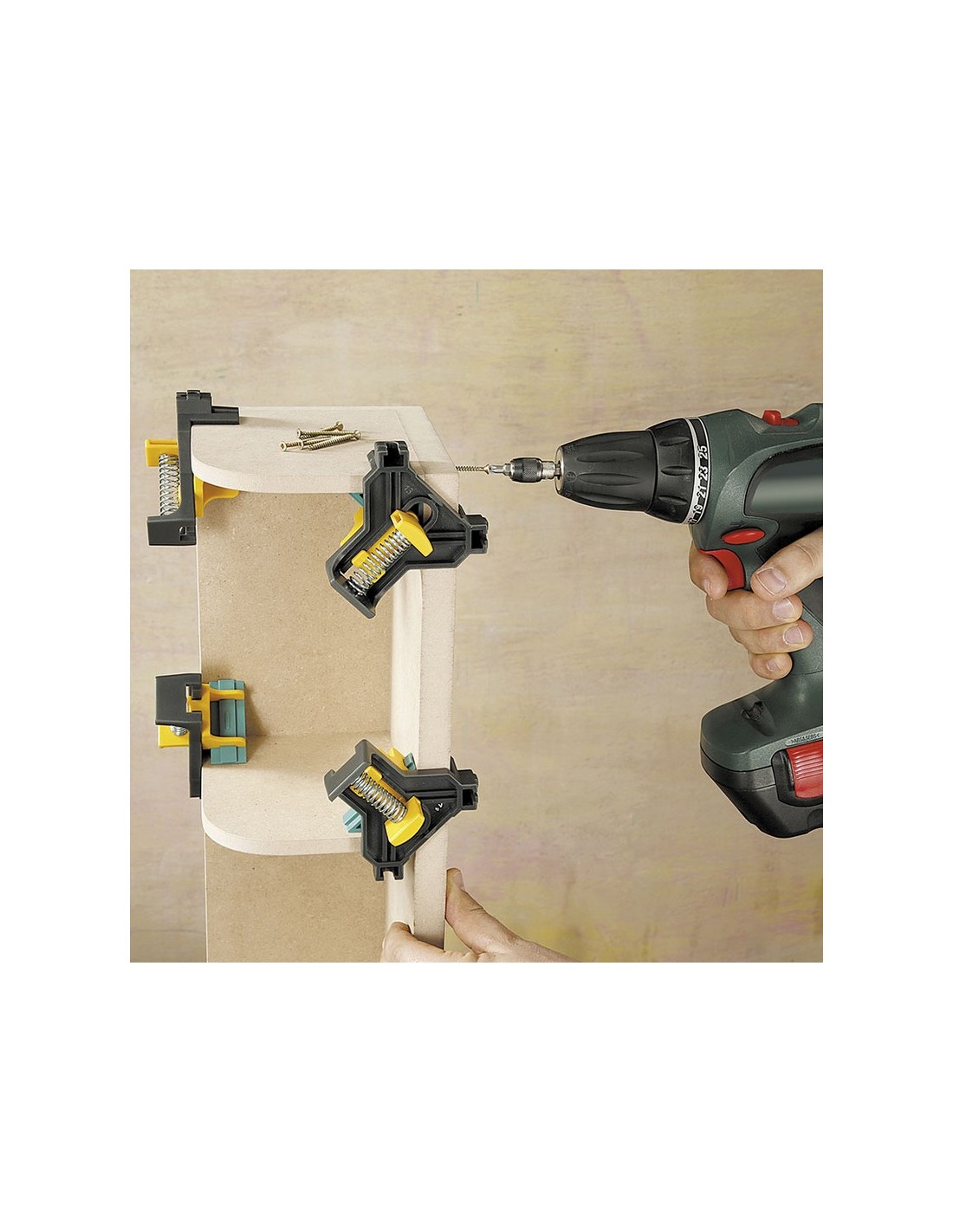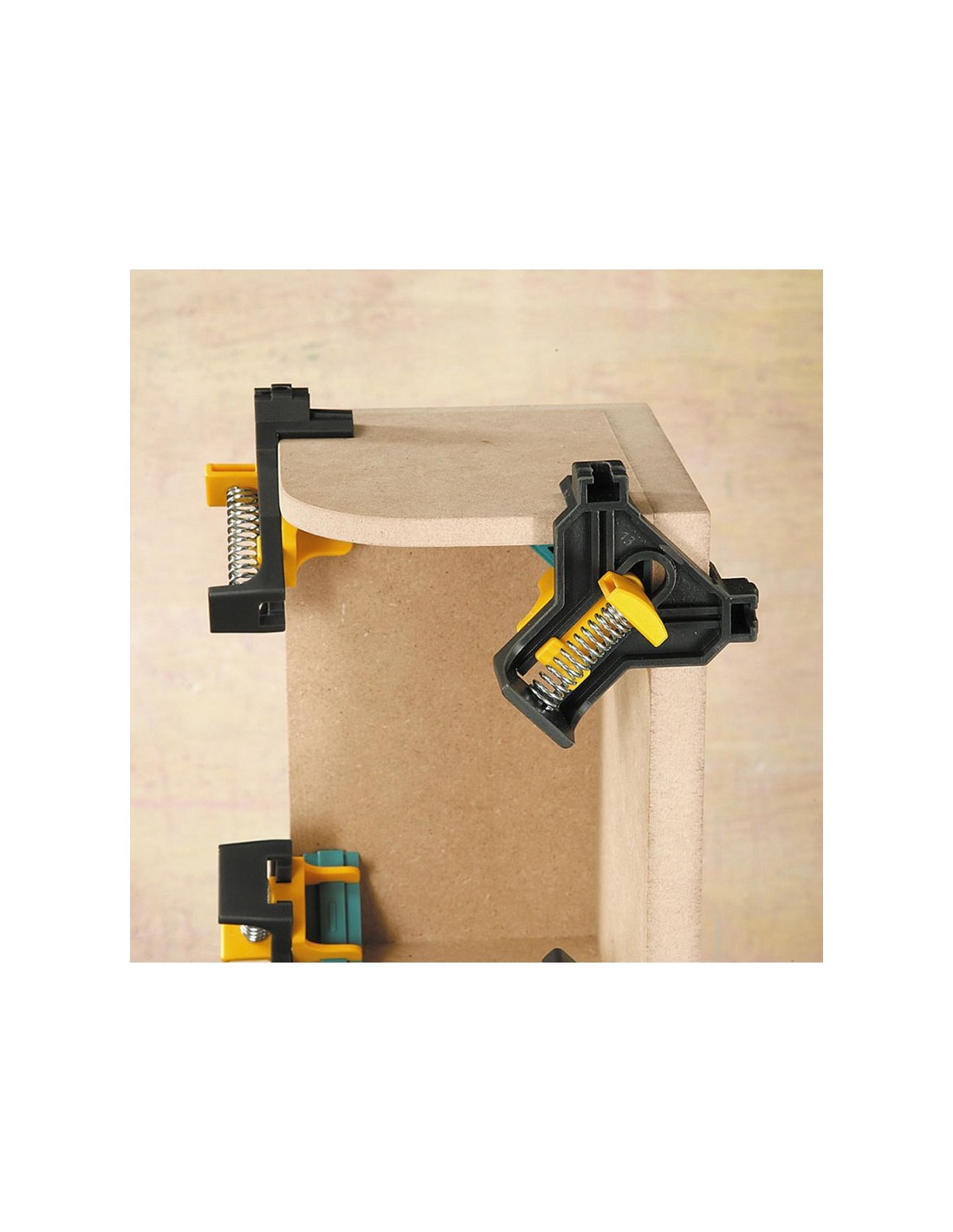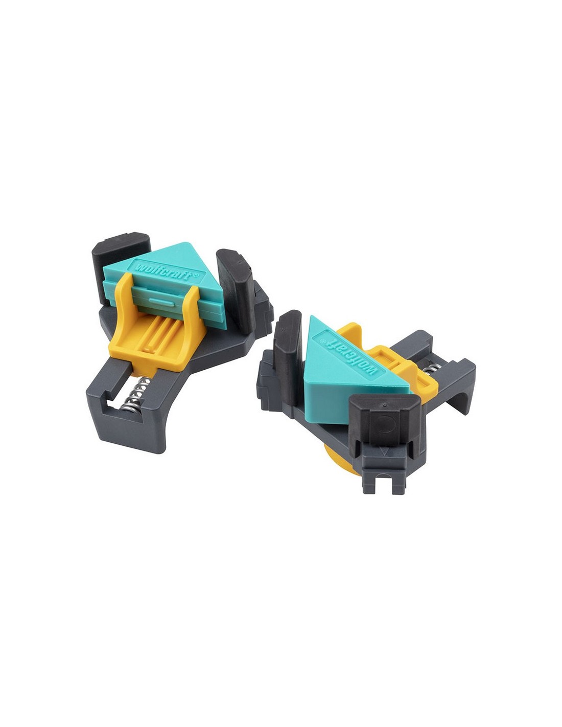 Sargento para esquinas WOLFCRAFT ES22 Para fijar rápida y sencillamente tablas y marcos en un ángulo de 90°, por ejemplo, para construir estanterías, armarios pequeños o marcos. Grosor del tablero 10 - 22 mm. 2 unid.