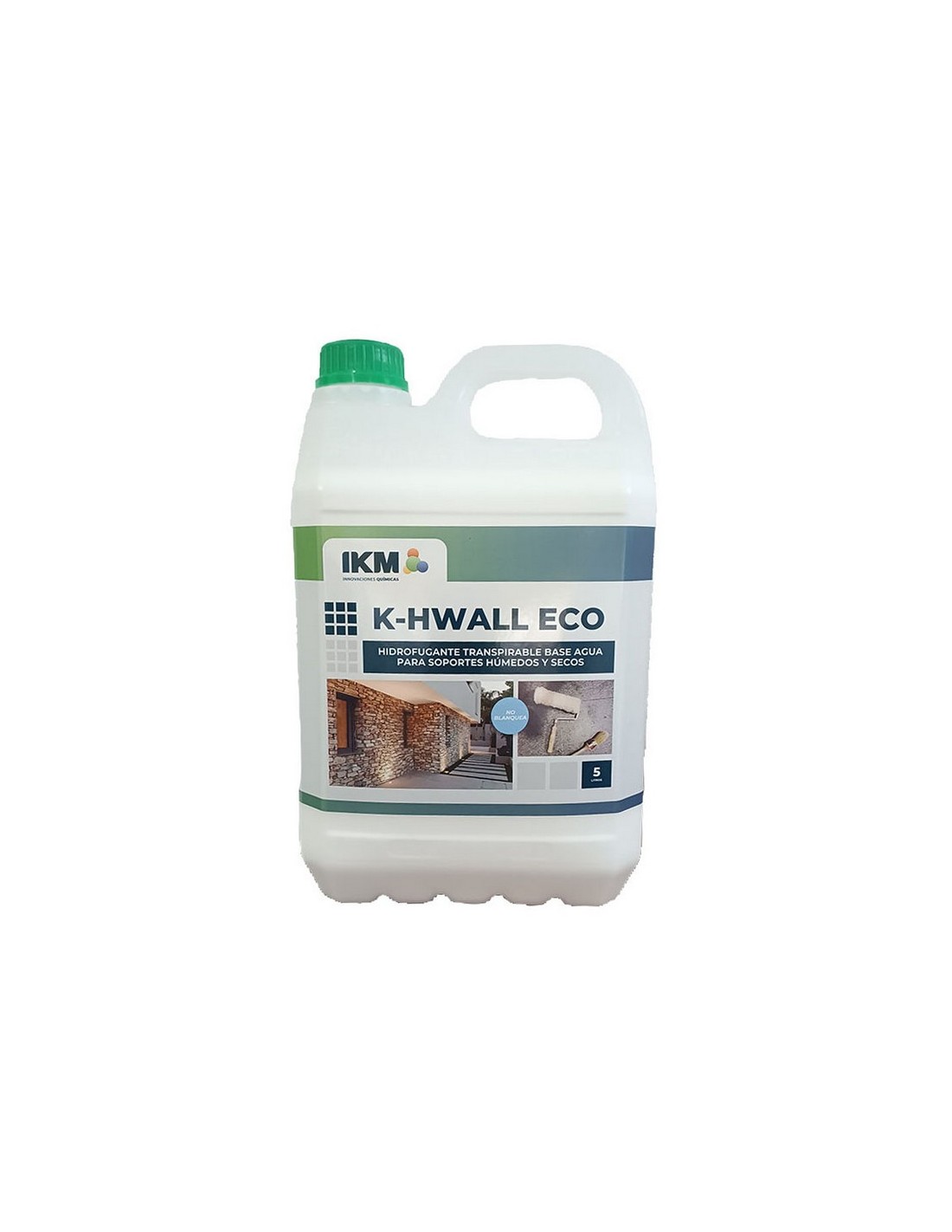 IKMHidrofugante transpirable IKM K-HWALL ECO Base agua. Limita la penetración del agua de lluvia. Facilita la limpieza de las fachadas. Impide la adherencia de suciedades,y lo que es más importante, la penetración de la misma en los materiales porosos. No blanquea. 5 litros.