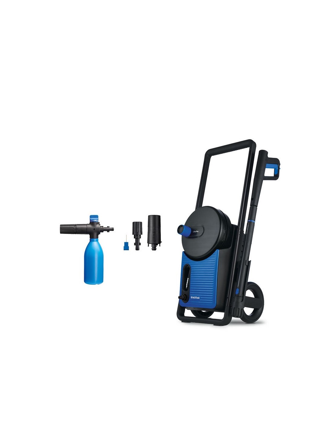 Hidrolimpiadora NILFISK Excellent 160 Motor de inducción y bomba metálica. Para superficies grandes y medianas. Para limpieza de jardines grandes, persianas, terrazas, garajes, coches y motos. Limpieza de hormigón, madera y piedra. Potencia nominal: 2.000 W.