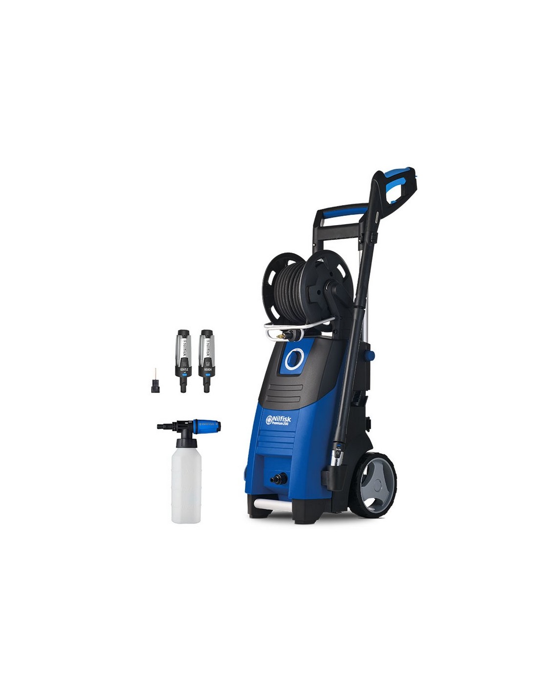 Hidrolimpiadora NILFISK Premium 200-15 De alto rendimiento. Motor de inducción y culata de latón. Regulador de presión. Perfecta para grandes superficies y tareas de larga duración como jardines grandes, botes, piscinas, caballerizas, caravanas, garages, o talleres DIY. Limpieza de hormigón, madera y piedra. Potencia nominal: 3.300 W.