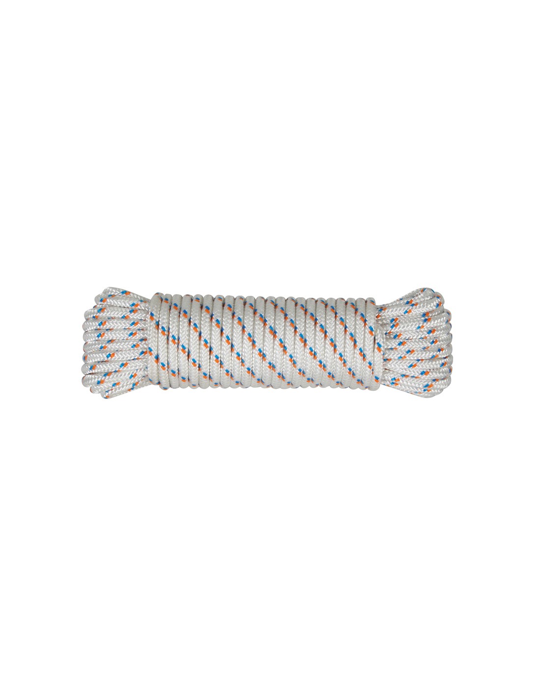 Cuerda nilón trenzado EHS. Alta tenacidad. Blanco-azul/naranja. Madeja retractilada. ø 6 mm x 15 m.