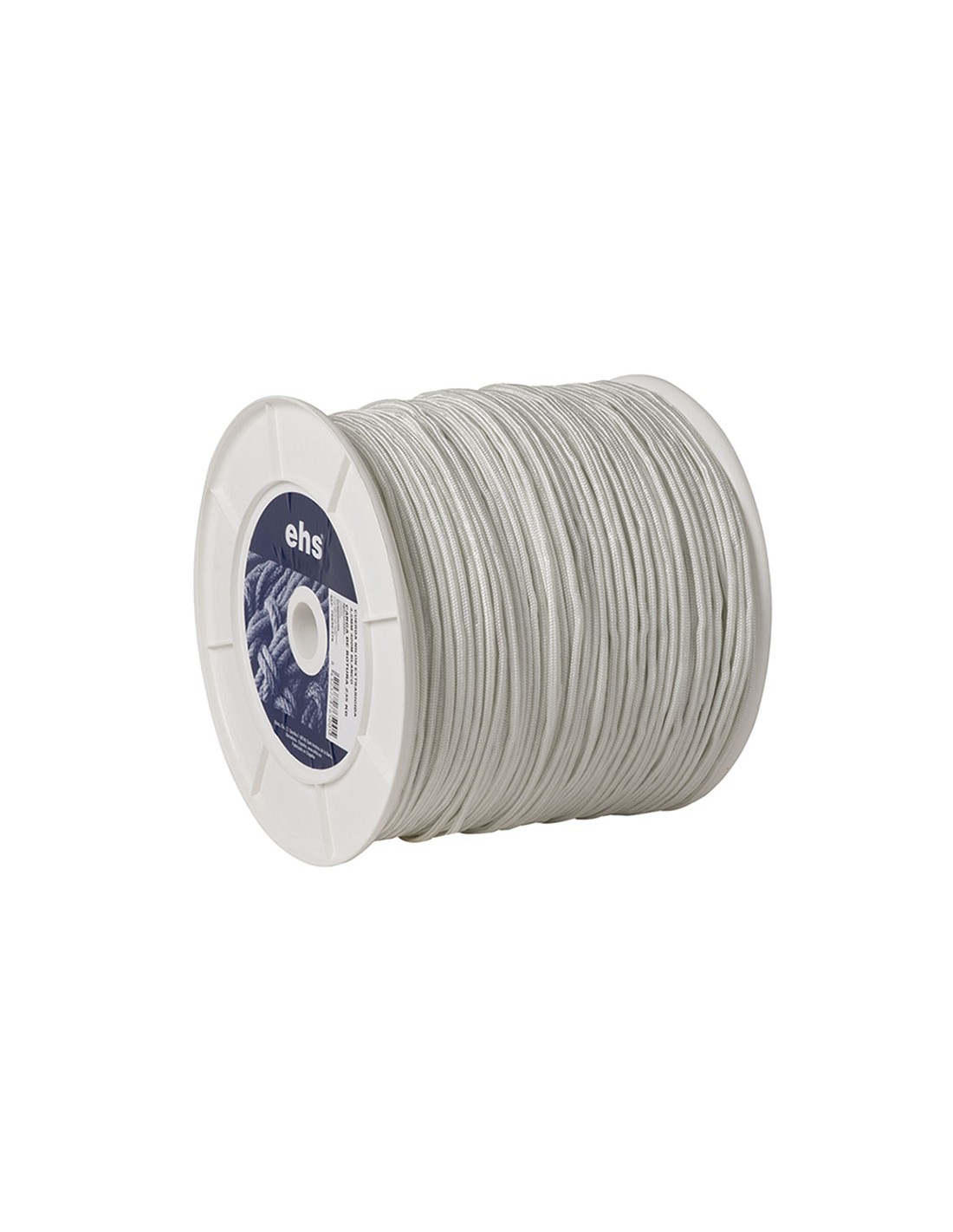 Cuerda nilón extrarígido EHS Cuerda trenzada doble capa con alma monofilamento. Compuesto anti-UVA. Aplicaciones: tendederos, decoración, etc. Bobinas. ø 4,5 mm x 400 m. Blanco.