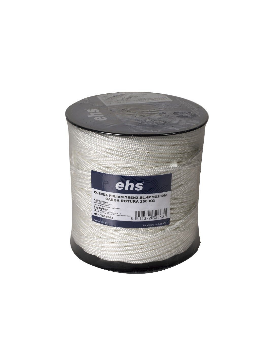 Cuerda poliamida trenzada EHS. Blanco. Madeja retractilada. ø 4 mm x 200 m. Bobina.