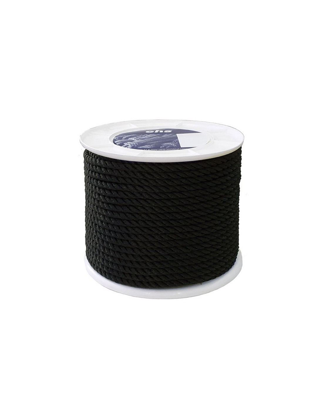 Cuerda trenzada poliéster EHS Cuerda compuesta de camisa trenzada y alma de cordón trenzado. Compuesto anti-UVA. Color flúor. Aplicaciones: deportes, seguridad náutica, driza mayor para barcos, etc. Bobinas. ø 10 mm x 100 m. Negro.