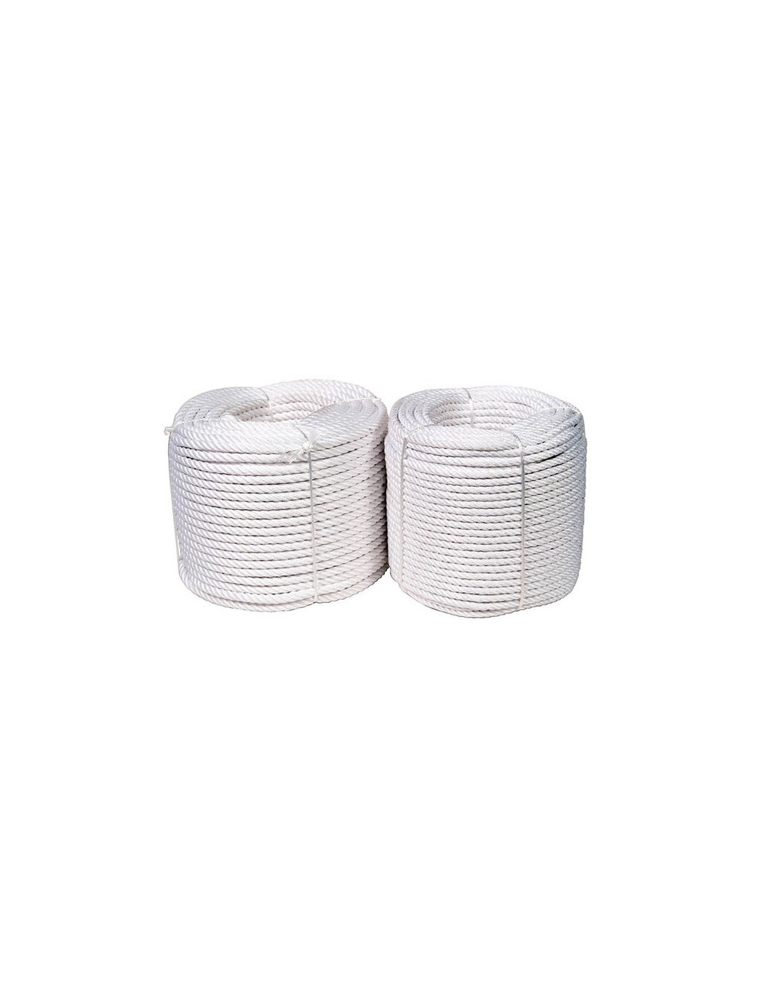 Cuerda cableada nilón ROMBULL Bobina. Color blanco. Fibra suave y flexible, buena resistencia al roce, buena capacidad de agarre. Aplicaciones: Agricultura, ganadería, remolques, pesca, náutica, decoración, tracción. ø 5 mm x 100 m.