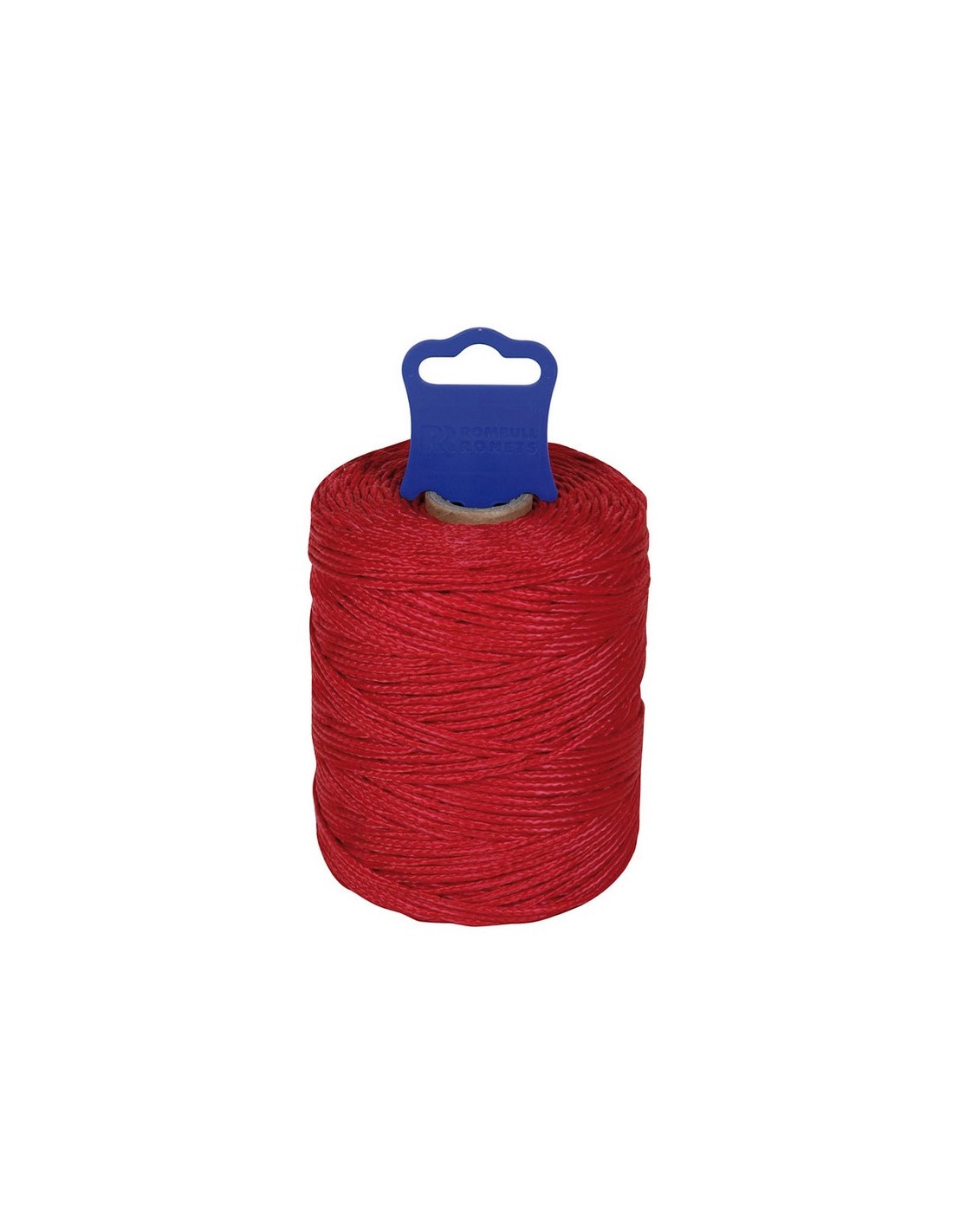 Hilo replanteo polipropileno trenzado ROMBULL Hilo trenzado. Polipropileno multifilamento de alta tenacidad, protección solar. Fibra suave y flexible, muy ligera, posee flotabilidad con gran resistencia a la tracción, buena anudabilidad, resistente a la mayoría de los ácidos. Aplicaciones: Albañilería, jardinería, horticultura, bricolaje, manualidades, paquetería, deporte, etc. ø 1,8 mm x 100 m. Rojo.