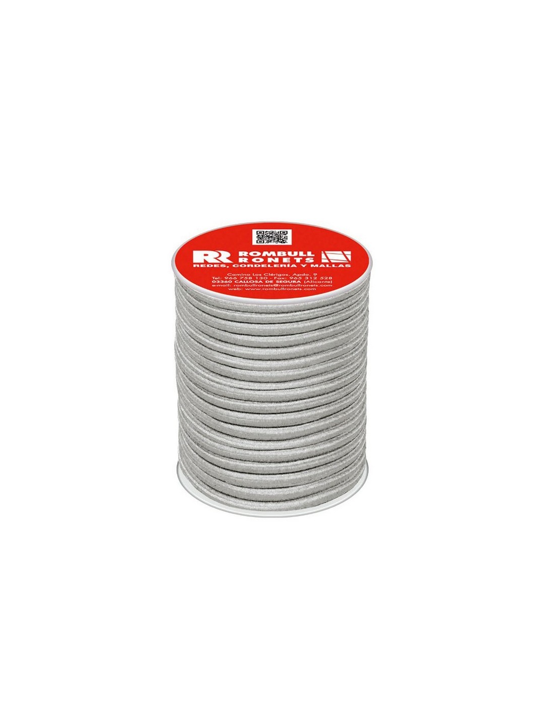 Cuerda elástica ROMBULL Camisa en polipropileno y poliéster dependiendo del color, interior látex. Trenzado con alma. Aplicaciones: Sujeción de paquetes en superficies móviles, redes de contenedor, industria del automóvil, toldos, pancartas, náutica. ø 6 mm x 15 m. Blanco.