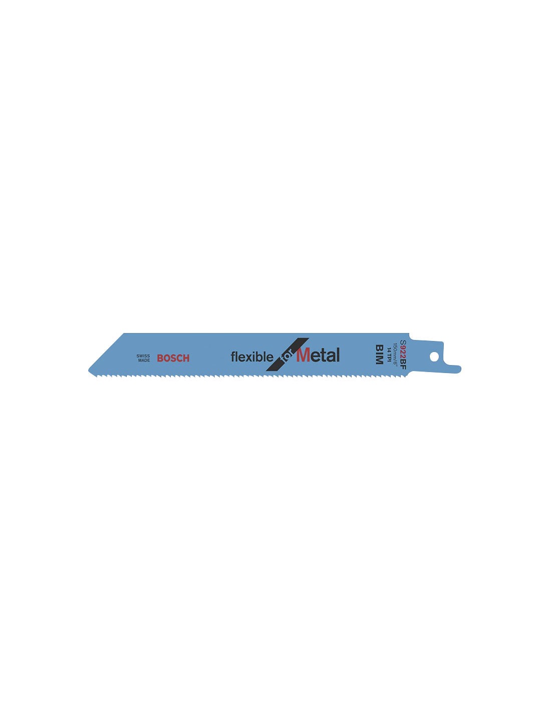 Hoja sierra sable corte metal BOSCH Anclaje universal 1/2". Material de la hoja en BIM (acero al carbono con tira de acero rápido), triscada y fresada. Cortes rápidos y flexibles (resistente a roturas). S 922 BF.\r\nCorte chapa gruesa: 3-8 mm.\r\nCorte tubo/perfil macizo: < ø100 mm.\r\nPaso: 1,8 mm / 14 TPI.\r\nHoja: 150x19x0,9 mm.\r\nCorte: rápido y recto.