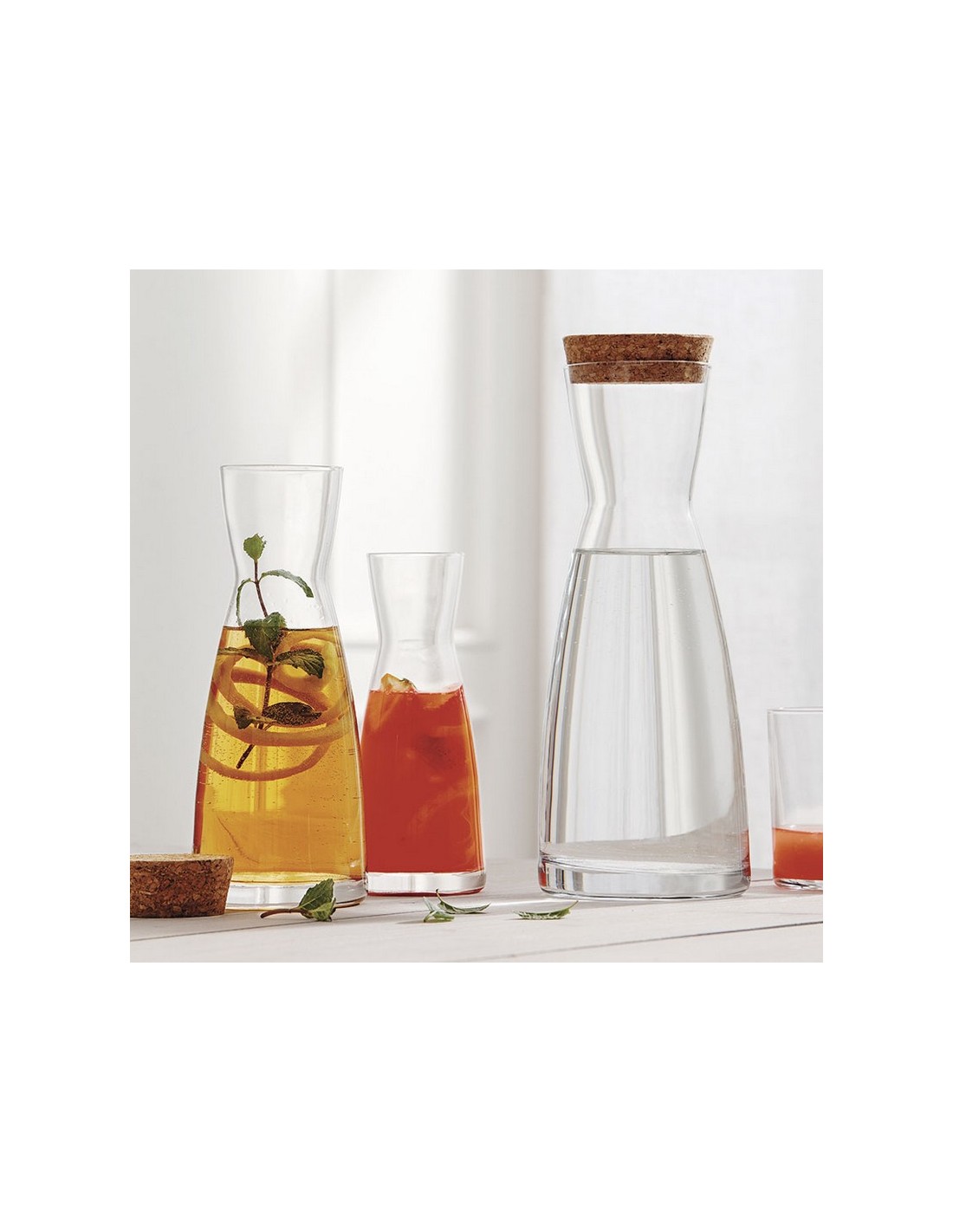 Es ideal para servir el vino, agua mineral o zumos entre otras bebidas. Esta jarra tiene un litro de capacidad y está fabricada en cristal, además, cuenta con un tapón de corcho. La jarra la podrás lavar en el lavavajillas. Se sirve en caja de 6 unidades.