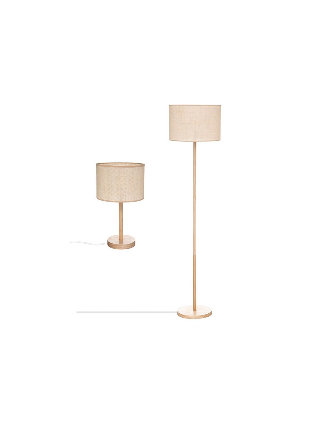 Lámparas serie Della Madera de pino natural. Pantalla de paja. De pie. ø 36xh.150 cm.