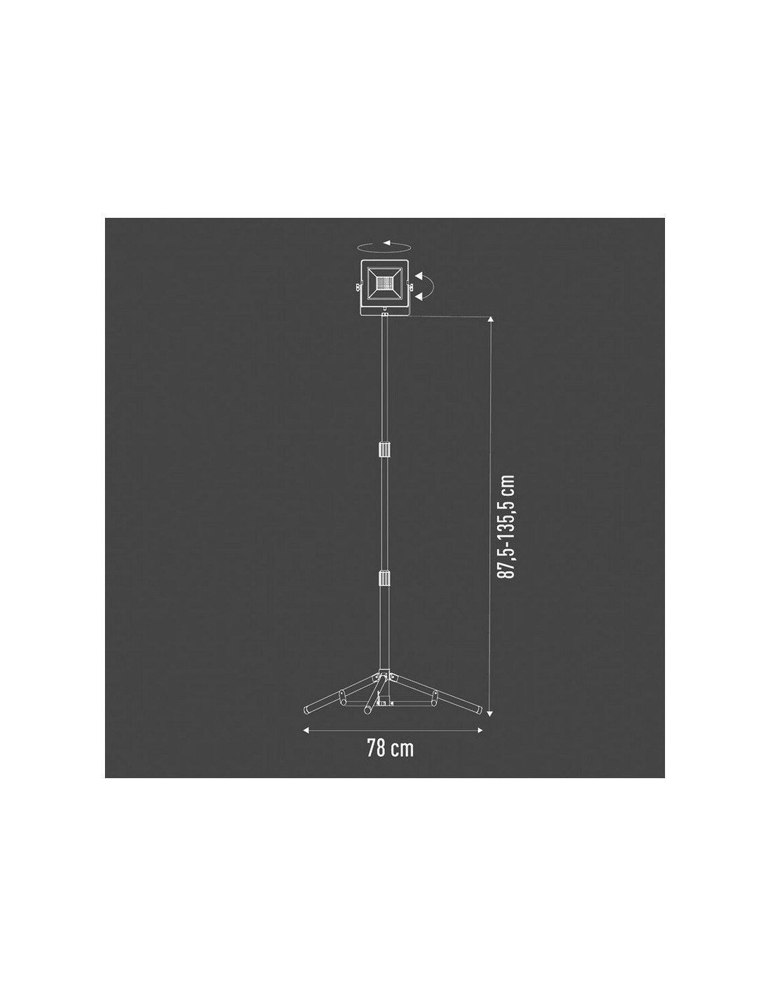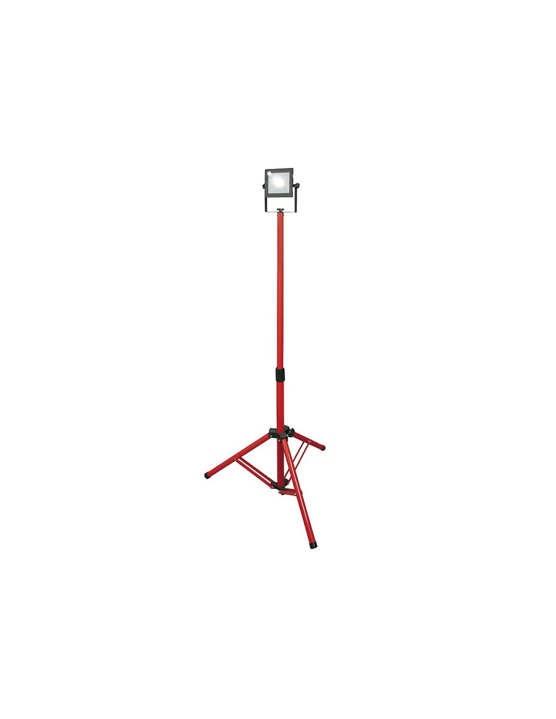 Foco proyector Led RATIO WorkLine con trípode Trípode extensible 70/122 cm. color rojo. Alta potencia. Carcasa de aluminio fundido a presión resistente a la corrosión. Vidrio templado. LED no recambiable. Ángulo de iluminación 120º. Luz día 5000 K. Vida útil 25.000 horas. 2,5 metros de cable. Protección IP65. 1 x 20 W. 1.880 lm.
