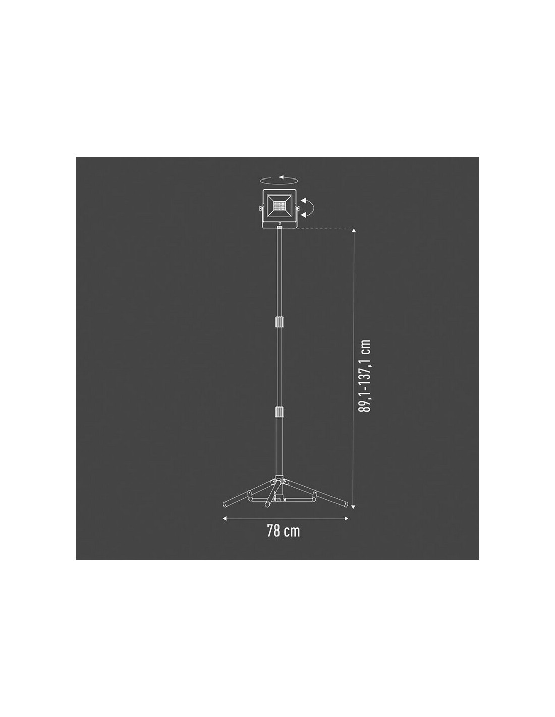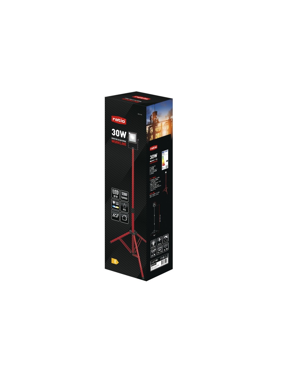 Foco proyector Led RATIO WorkLine con trípode Trípode extensible 70/122 cm. color rojo. Alta potencia. Carcasa de aluminio fundido a presión resistente a la corrosión. Vidrio templado. LED no recambiable. Ángulo de iluminación 120º. Luz día 5000 K. Vida útil 25.000 horas. 2,5 metros de cable. Protección IP65. 1 x 30 W. 3.300 lm.