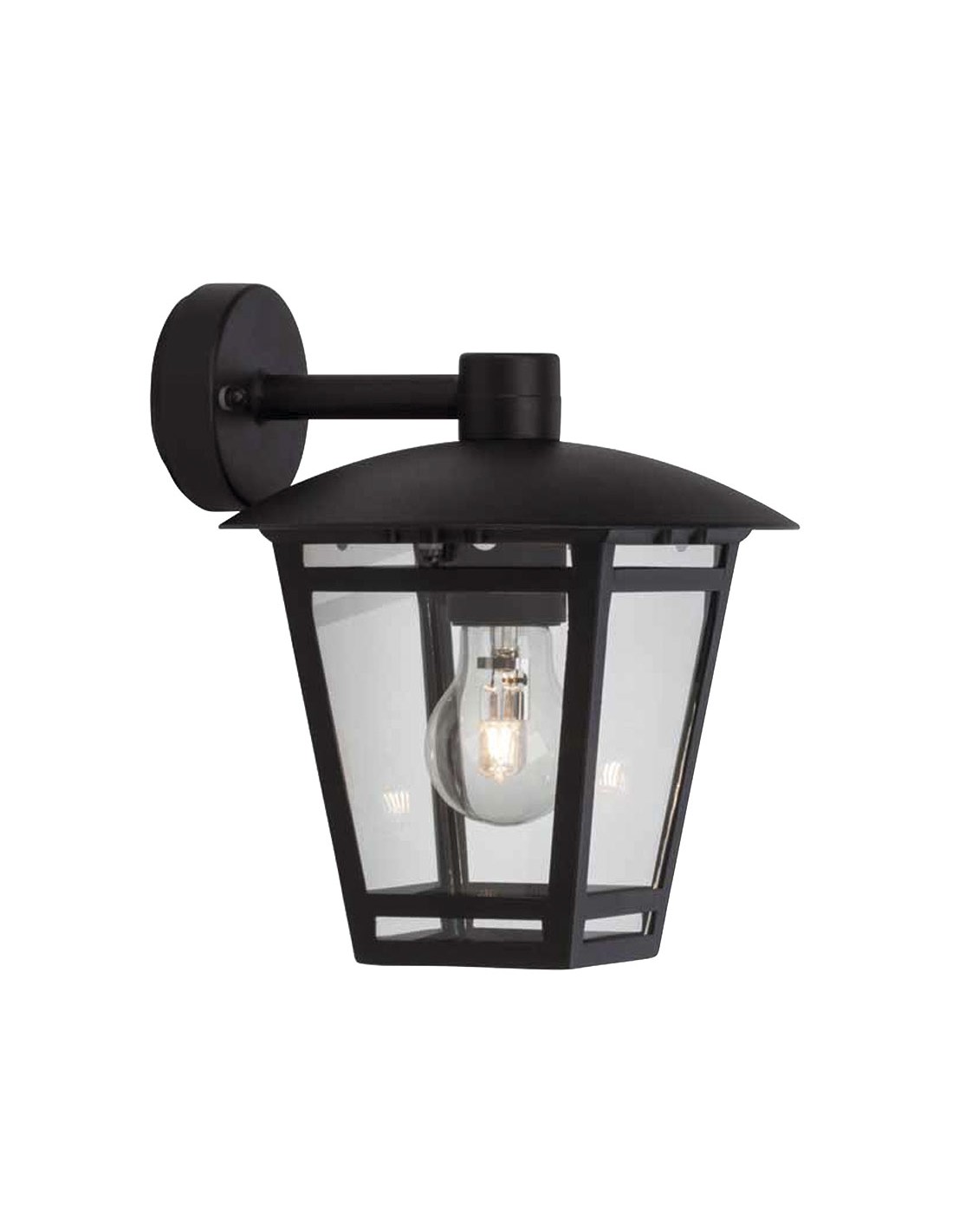 Aplique exterior DUOLEC Siena Estructura aluminio fundido pintado negro y cristal. IP44. Rosca E27. Lámpara potencia máx. 60 W (no incluida). Descendente. ø 20xh.24 cm