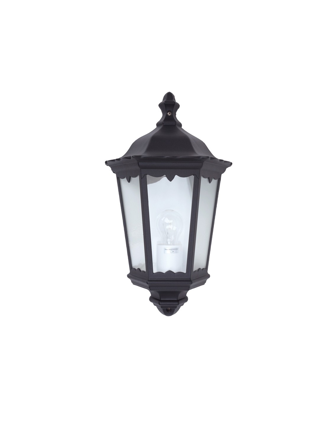 Aplique exterior DUOLEC Classic Estructura aluminio color negro. Protección IP44. Rosca E27. Lámpara potencia máx. 60 W. (no incluida). Medio aplique pared. h.44 cm.