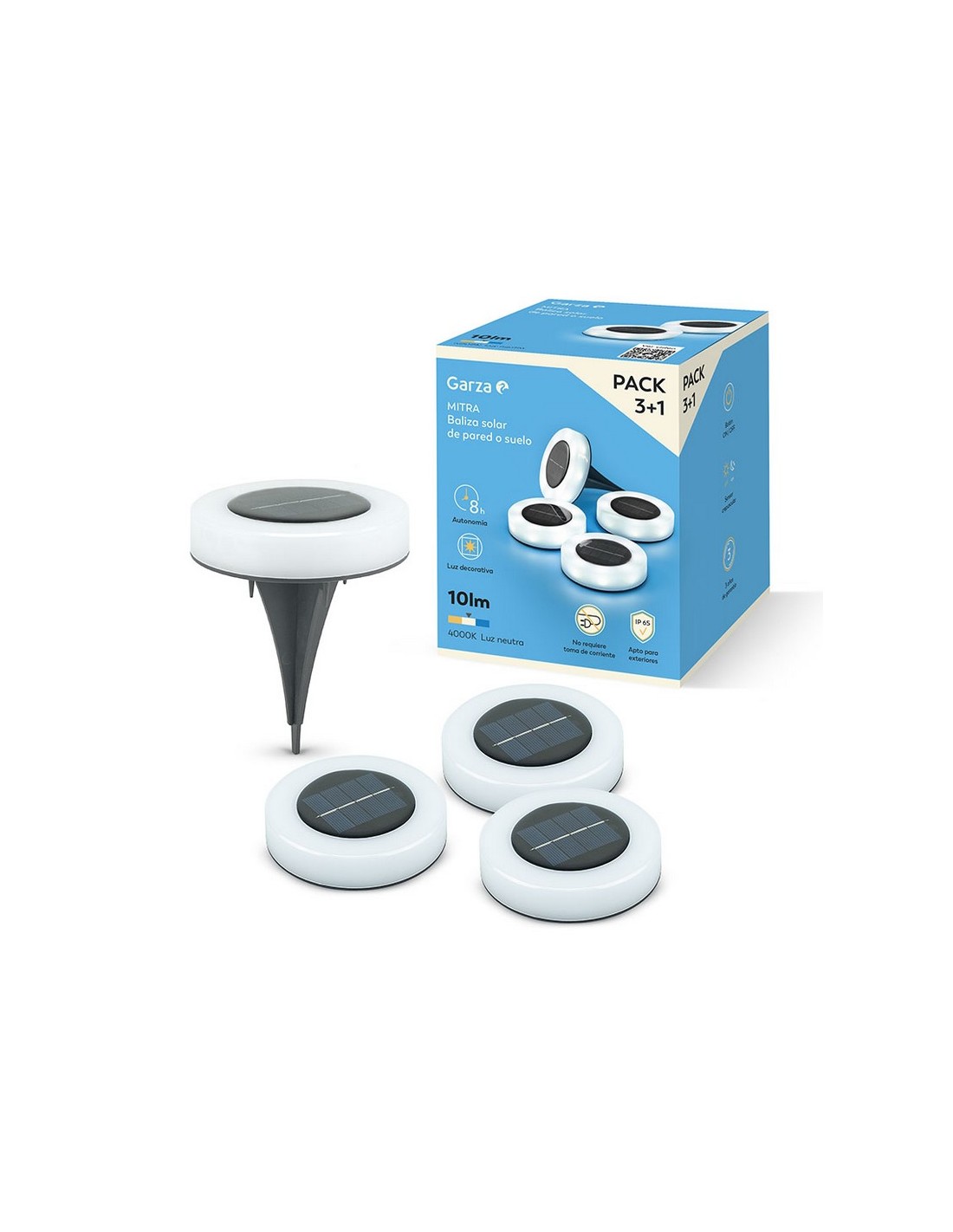 Baliza Solar Led Garza Mitra 3+1. Aptas para exterior. Sensor crepuscular. 10 lm. 4000K. Autonomía 8 h.