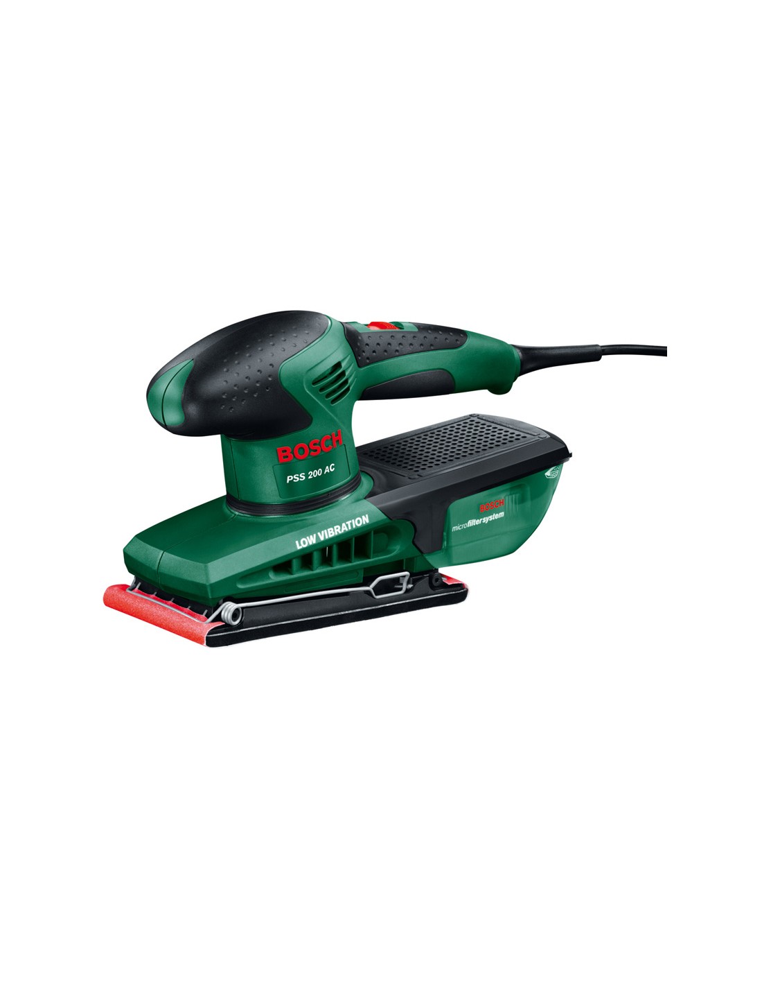 Lijadora orbital BOSCH PSS 200 AC. Empuñadura compacta y anillo antivibraciones. Nuevo microfiltro transparente con indicador carga polvo. Maletín transporte y hoja lija. Potencia: 200 W.