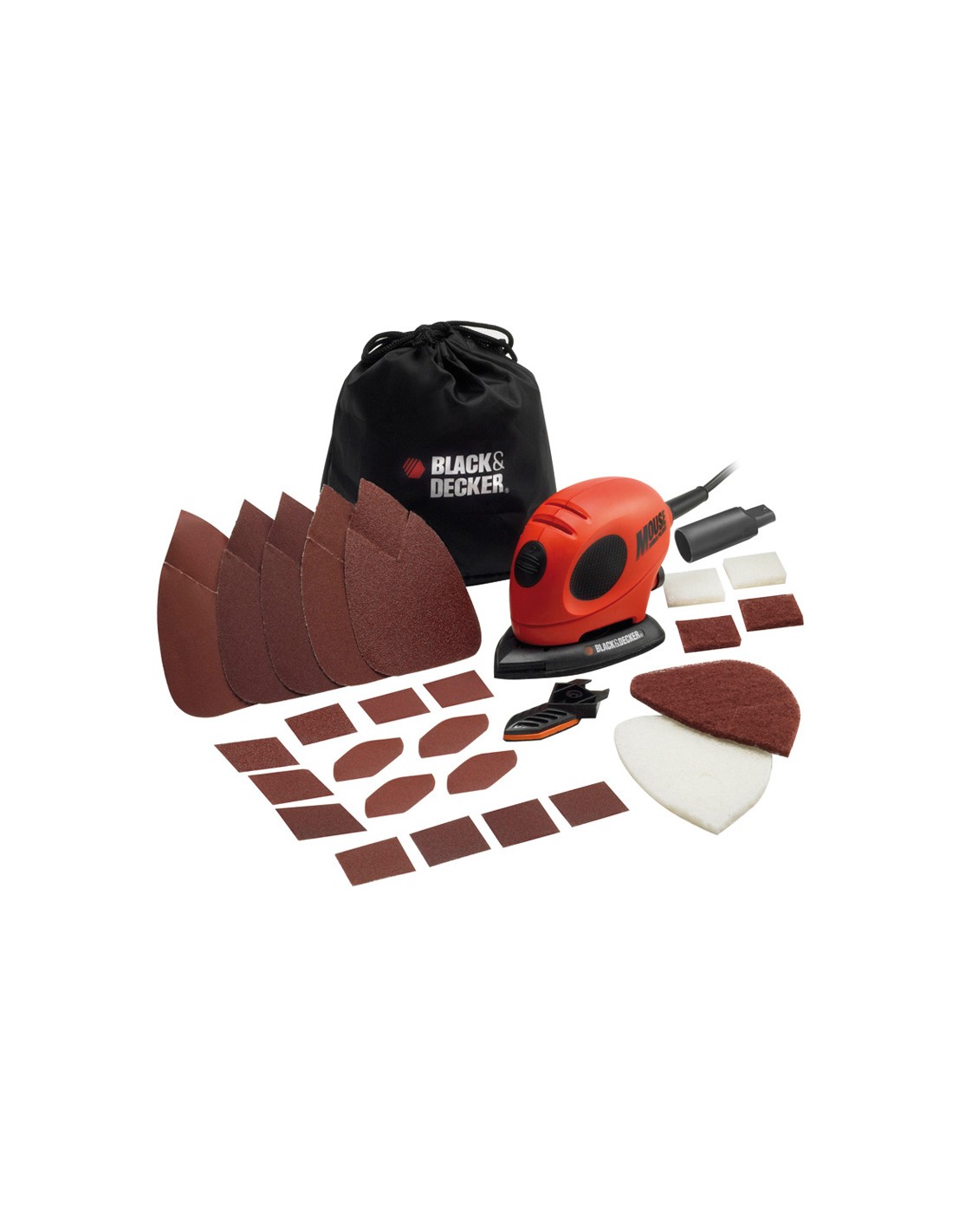 Lijadora delta B&D BEW230BC-QS Diseño compacto que proporciona mayor control. Fijación tipo velcro. Puntas intercambiables. Incluye bolsa de transporte y accesorios. Potencia: 55 W.