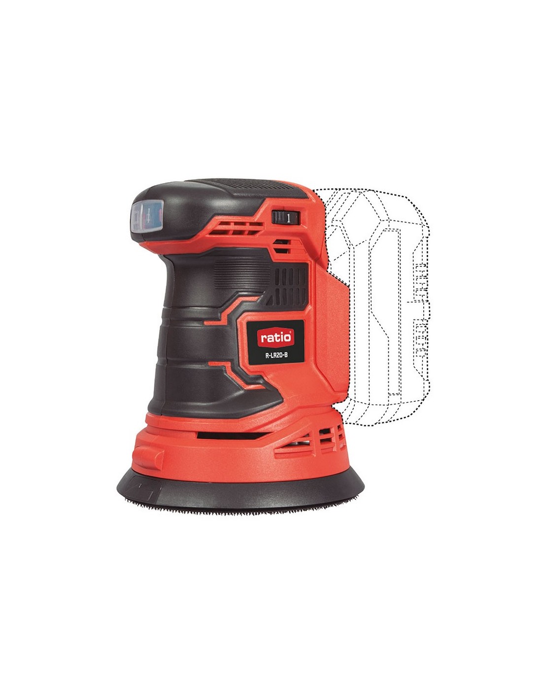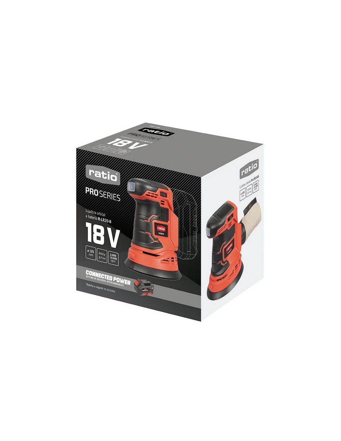 RATIOPROSERIESLijadora rotorbital batería RATIO ProSeries RLR20-B Sistema de baterías intercambiables Connected Power. Regulador electrónico con 6 velocidades. Saco de extracción de polvo. Cabezal ergonómico. Óptima refrigeración. Batería y cargador no incluido. Potencia: 18 V.