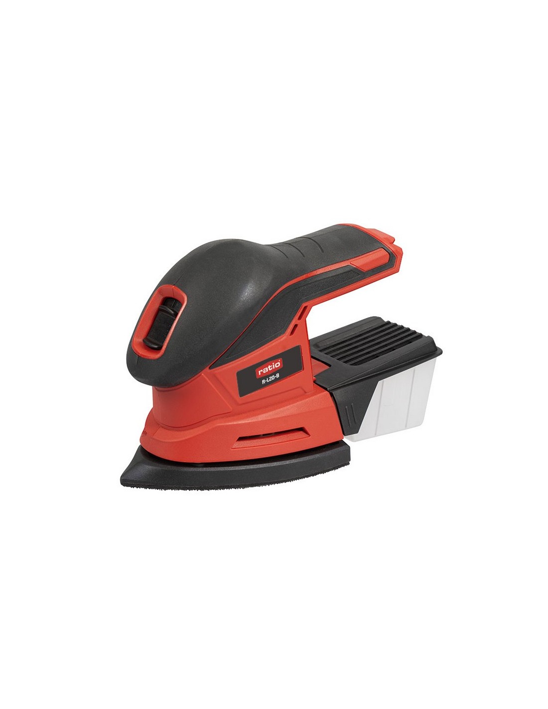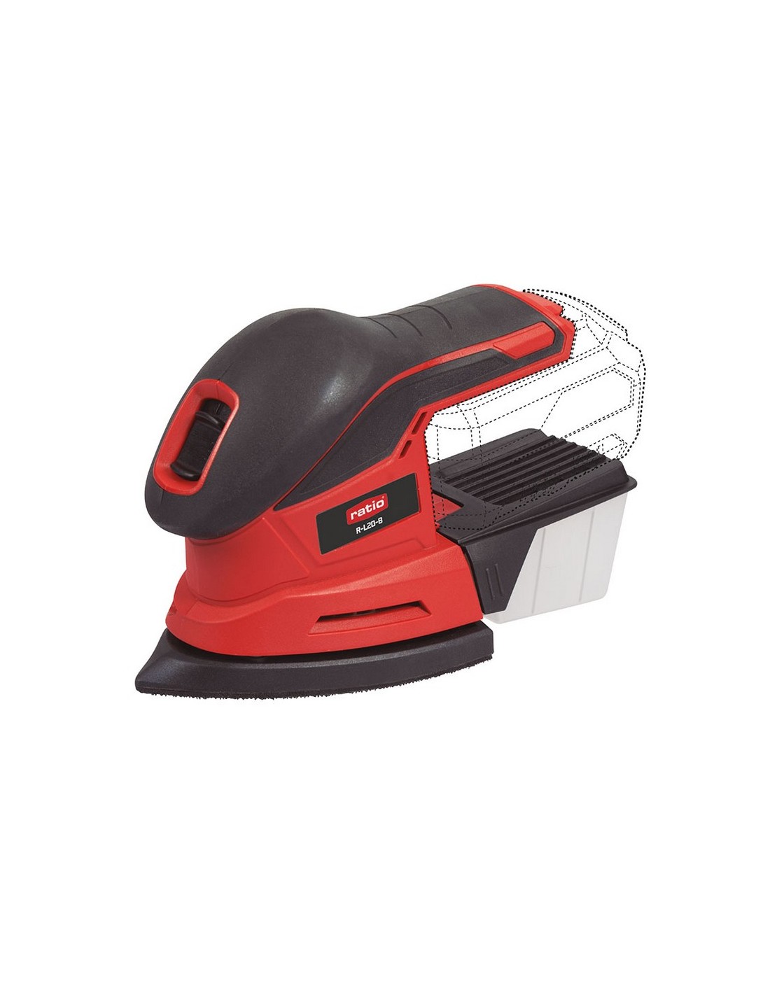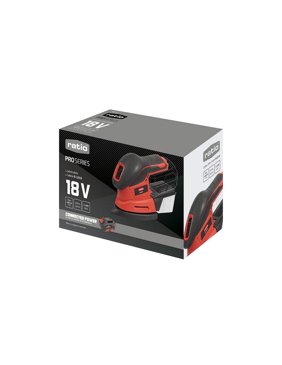 Lijadora delta batería RATIO ProSeries RL20-B Sistema de baterías intercambiables Connected Power. Plato delta autoadherente. Salida viruta adaptable a aspirador externo. Empuñadura antideslizante ergonómica. Batería y cargador no incluido. Potencia: 18 V. rpm: 11.000. Órbita: 1,6 mm. Lija: 148x148x100 mm. Peso: 0,8 kg.