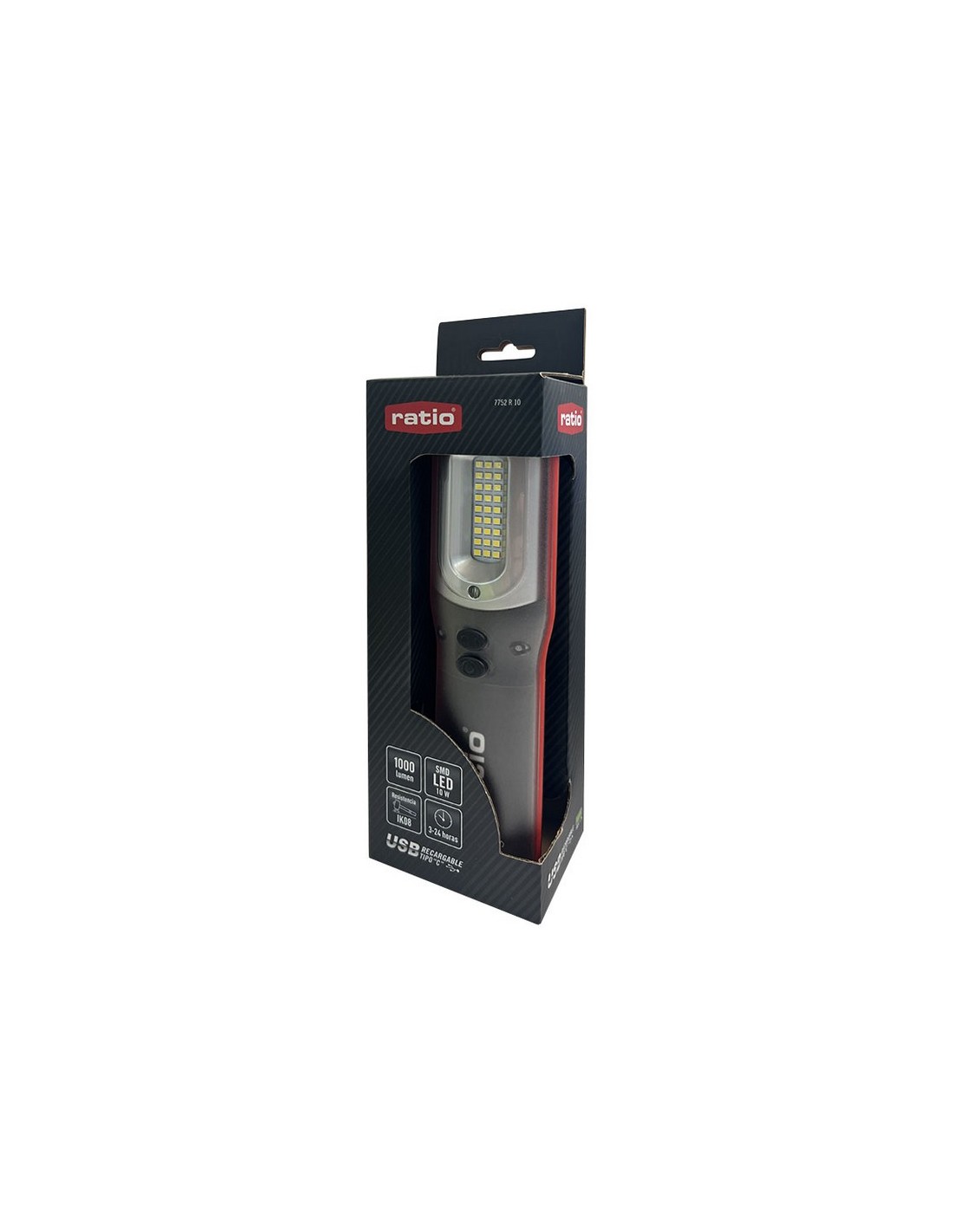 Linterna recargable Led RATIO Workline RB1000 Led alta potencia. Recargable USB. Tiempo de carga 4,5 horas. Resistente al agua 2 m. Base magnética. Protección IP54. Iluminación frontal y superior. Base magnética. Potencia máx. 1000 lm.