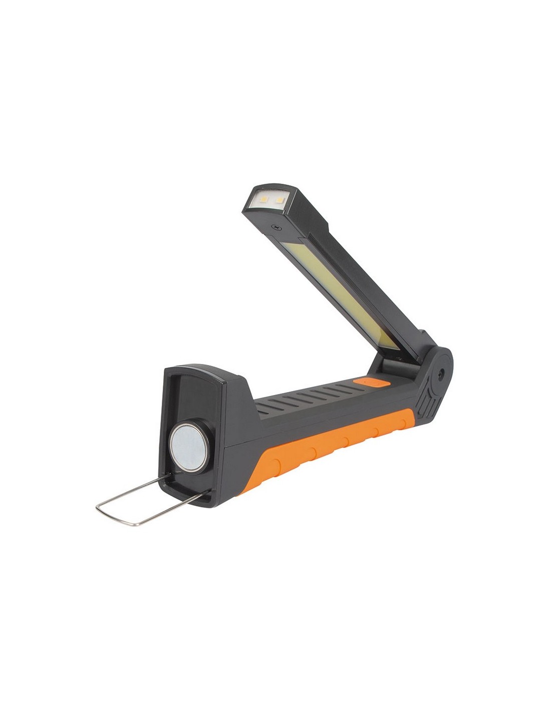 Linterna Led DUOLEC Bricolight R020 Cuerpo de plástico. Batería litio recargable 3,7 V 1.200 mAh. Iluminación frontal y lateral. Recargable USB. Con imán y gancho. LED no reemplazable. Expositor display 9 unidades. Potencia máx: 5 W COB + 1 W. / 400 lm.