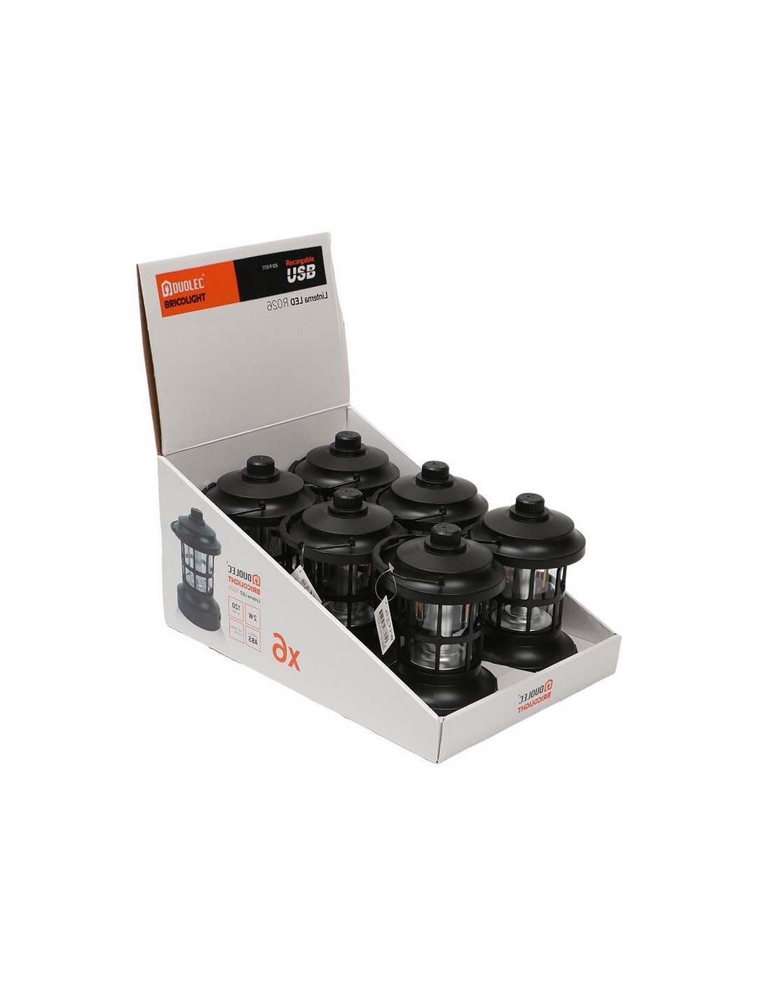 Linterna Led DUOLEC Bricolight R026 Linterna LED estilo vintage. Recargable USB C. Cuerpo de plástico ABS. Luz regulable, de cálida a fría. Asa de transporte. Expositor display 6 unid. Potencia máx: 2 W / 120 lm.