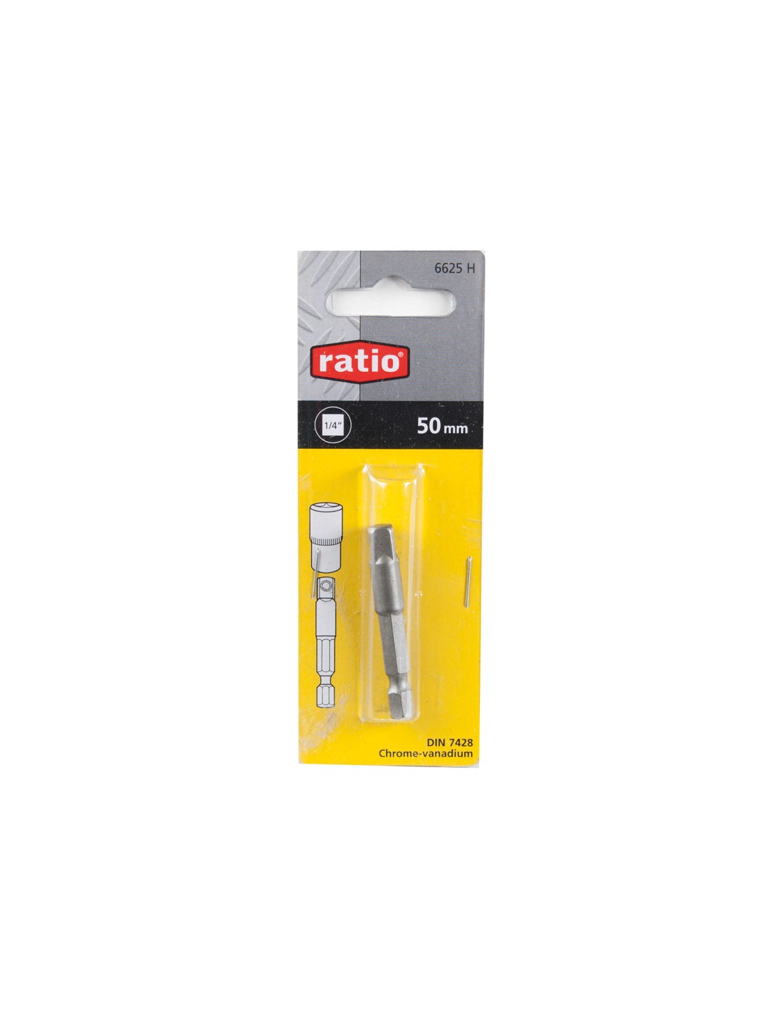 Adaptador para vasos 1/4 RATIO. Cromo-vanadio. DIN 7428. 50 mm.