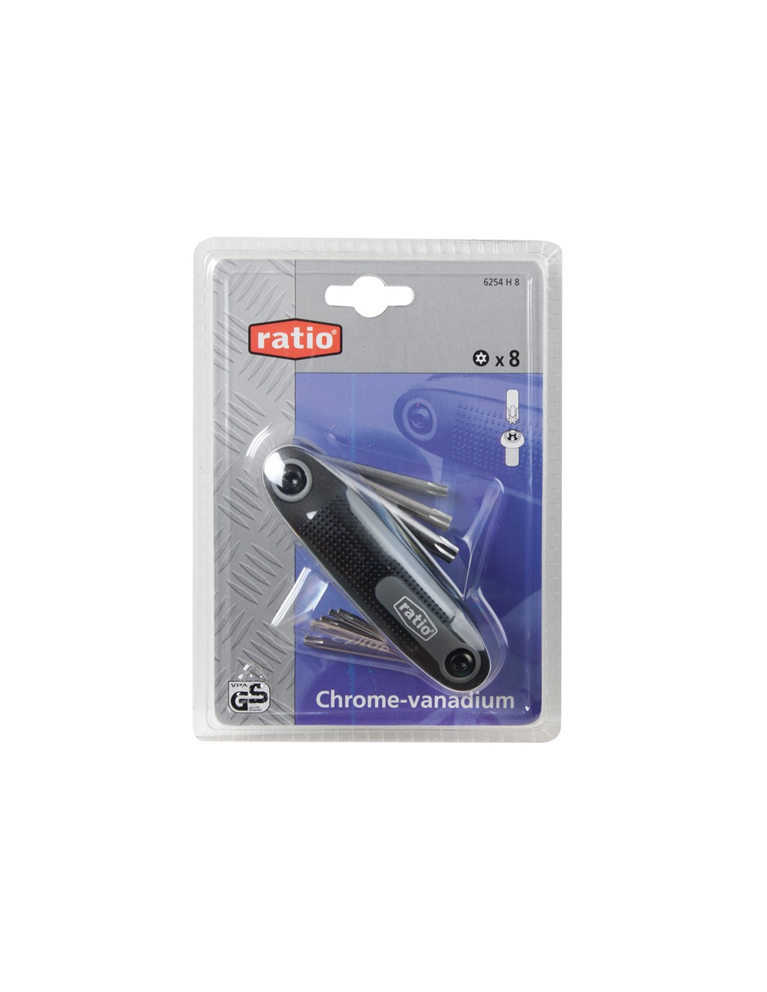 Llave acodada Torx RATIO 6254 Seguridad. Navaja plegable 8 piezas. Cromo-vanadio. T9-10-15-20-25-27-30-40.