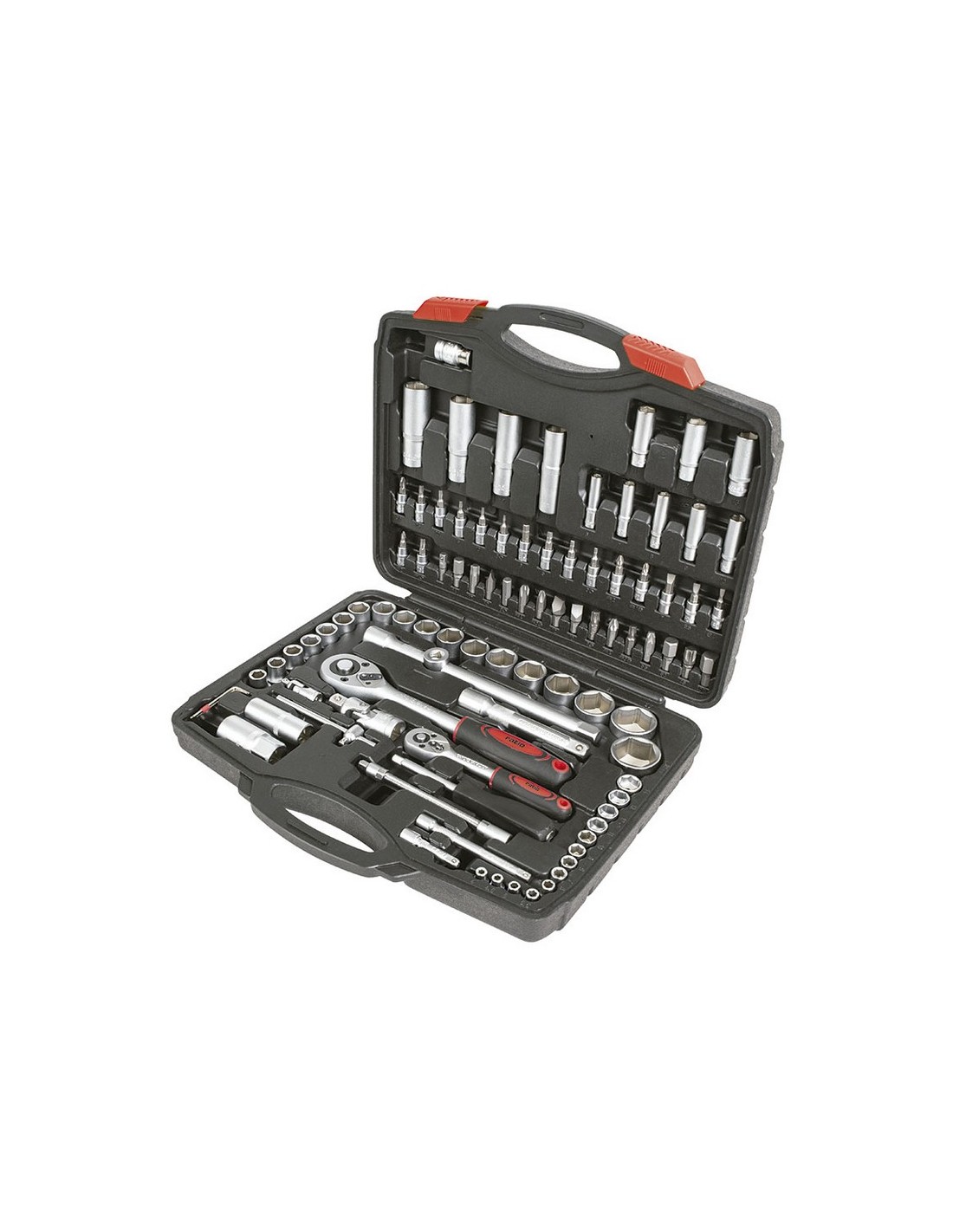 Maletín 95 herramientas RATIO Basic Acero cromo-vanadio satinado. Vasos ¼" y ½" con sistema de bloqueo y expulsor Locksystem. Composición:.