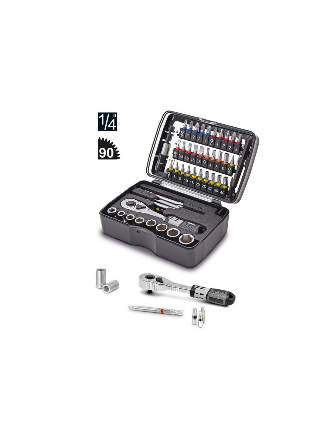 Juego 47 piezas 1/4" vasos+puntas MATADOR Fabricadas con material S2 de alta calidad y codificadas por colores para identificación. Portapuntas profesional para uso en atornilladores y taladros inalámbricos. 47 piezas, 6,3 mm (1/4\"): 6-13 mm.