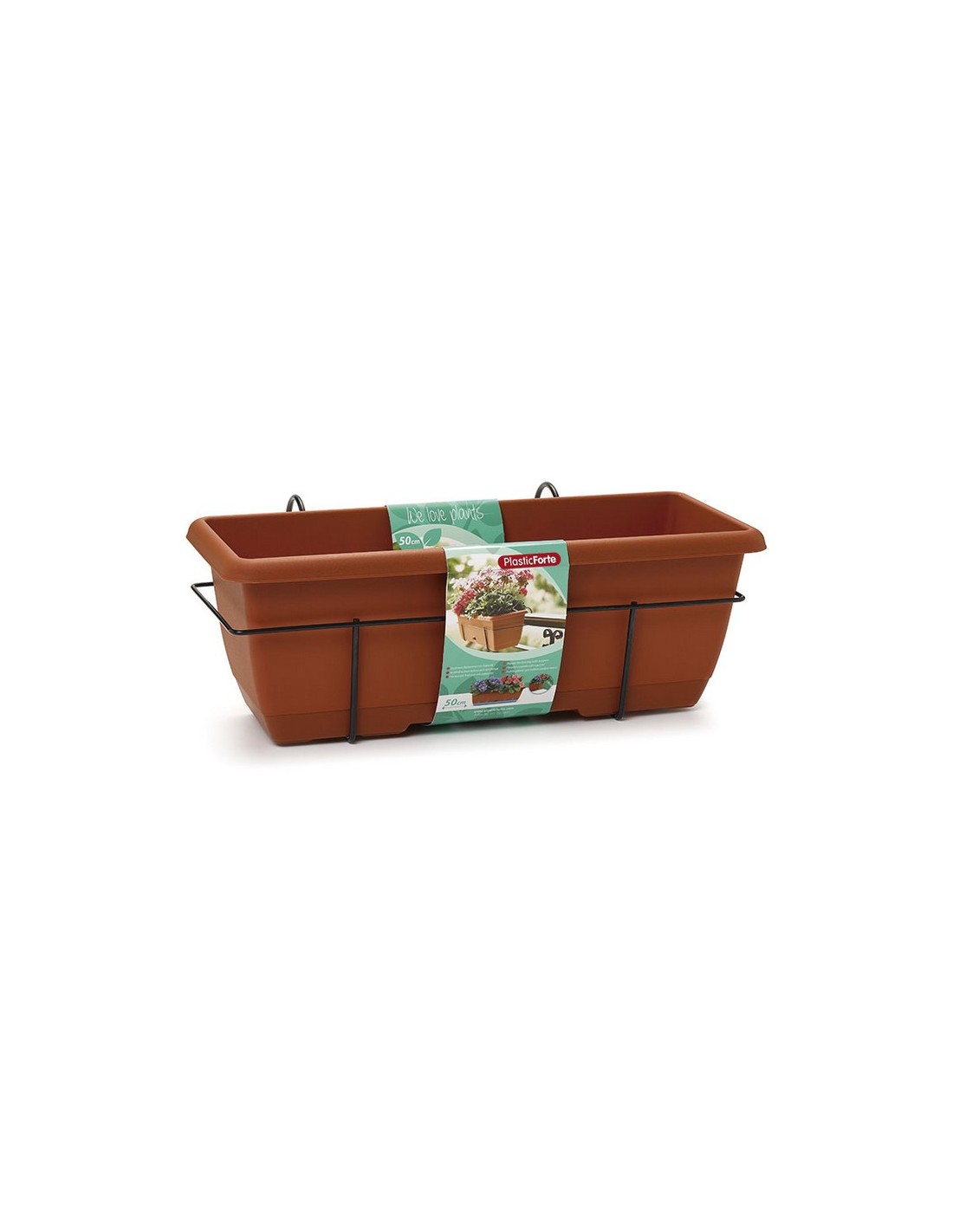 Macetas y jardineras Plástico. Color terracota. Balconera+plato+soporte. 50 cm.