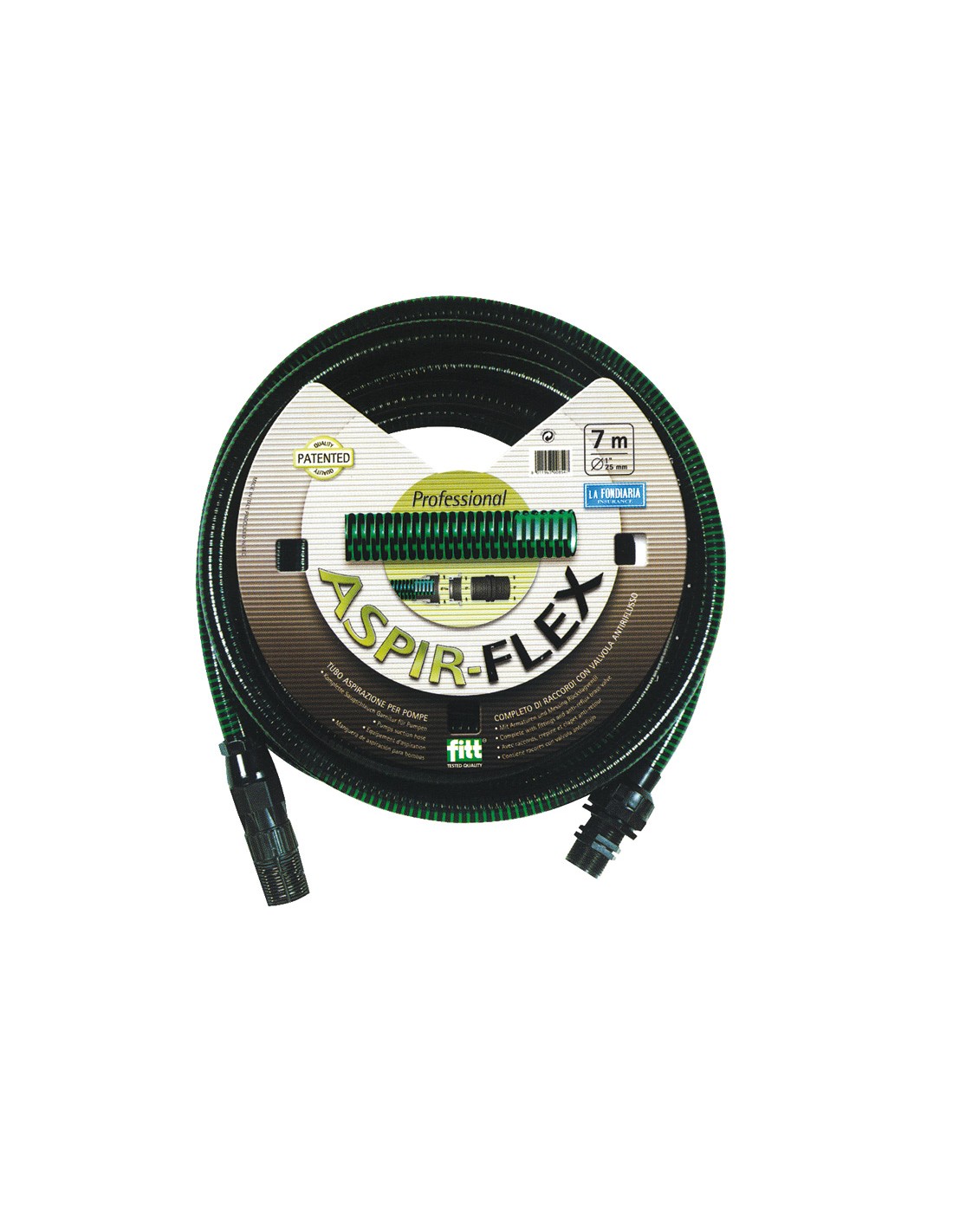 Manguera aspiración FITT. Kit completo para bombas. Tubo PVC. Incluye racor roscado para conexiones de 1"; (25 mm). Filtro de aspiración con válvula anti-retorno. 7 m.